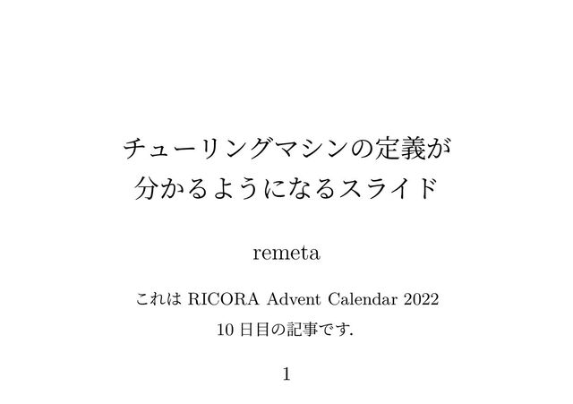 チューリングマシンの定義が 分かるようになるスライド remeta これは RICORA Advent Calendar 2022 10 日目の記事です.