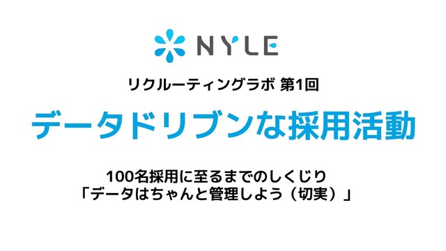 ナイル株式会社・採用チーム主催の人事コミュニティ「ナイルリクルーティングラボ」の第1回イベント「データドリブンな採用活動」で使用したスライドです。