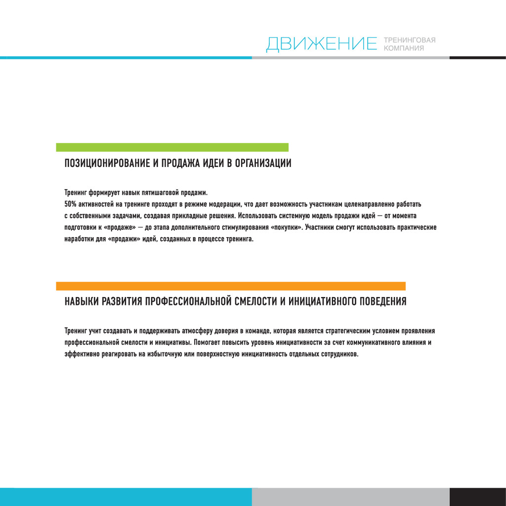 Тренинговая компания ДВИЖЕНИЕ задумывалась и существует как специализированная компания, целью которой является развитие навыков управления изменениями в организации.