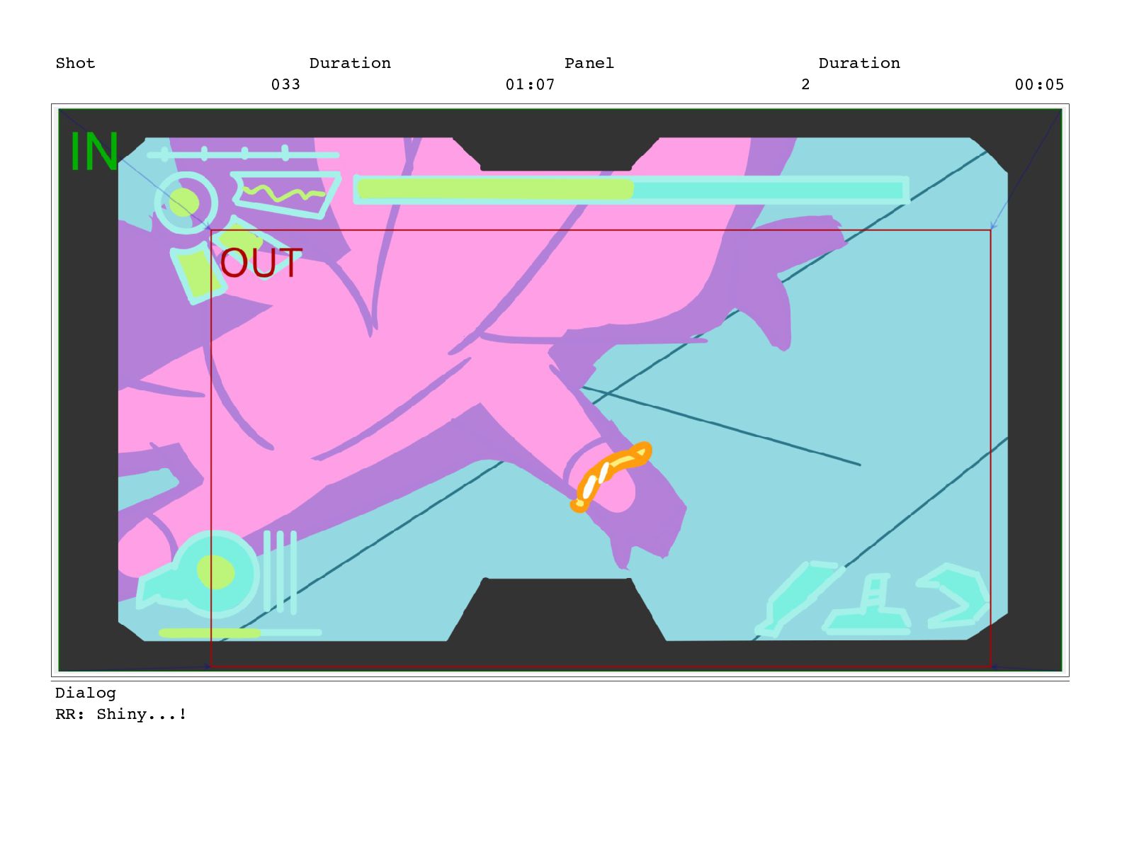 Shot 033 Duration 01:07 Panel 5 Duration 00:02 Dialog RR: