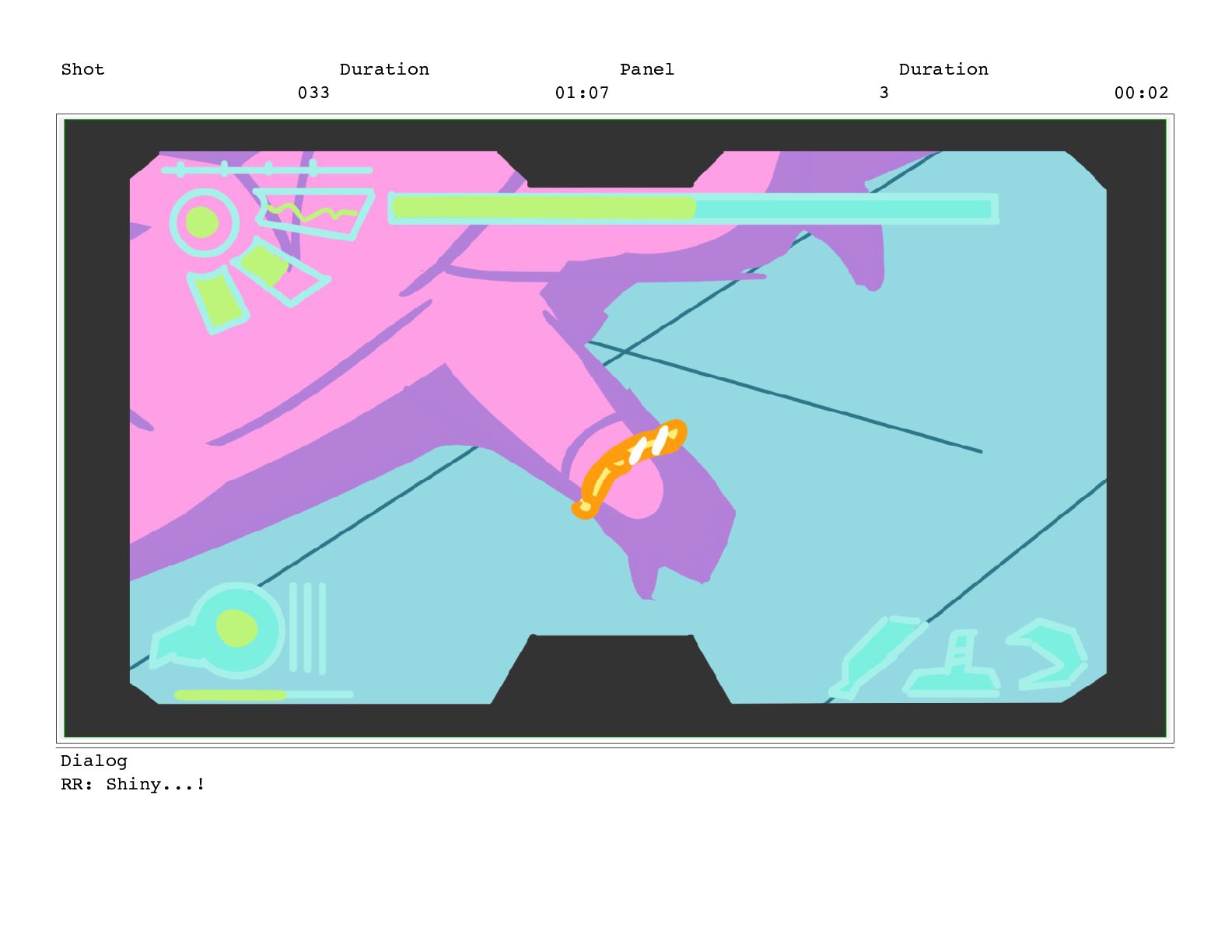 Shot 033 Duration 01:07 Panel 3 Duration 00:02 Dialog RR: