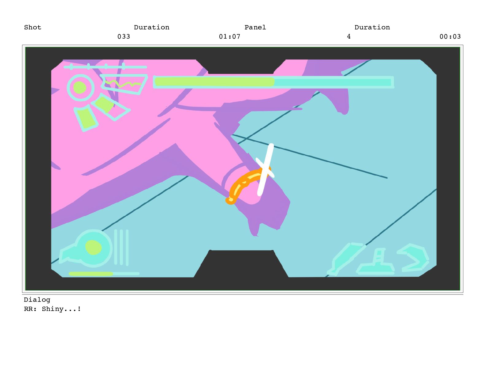 Shot 033 Duration 01:07 Panel 4 Duration 00:03 Dialog RR: