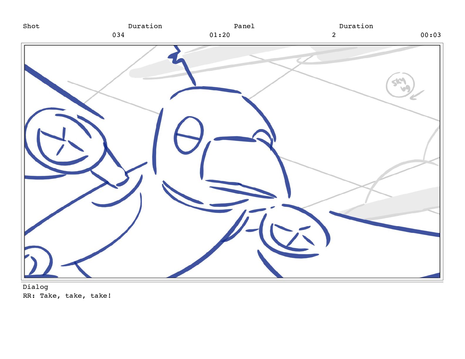 Shot 034 Duration 01:20 Panel 2 Duration 00:03 Dialog RR: