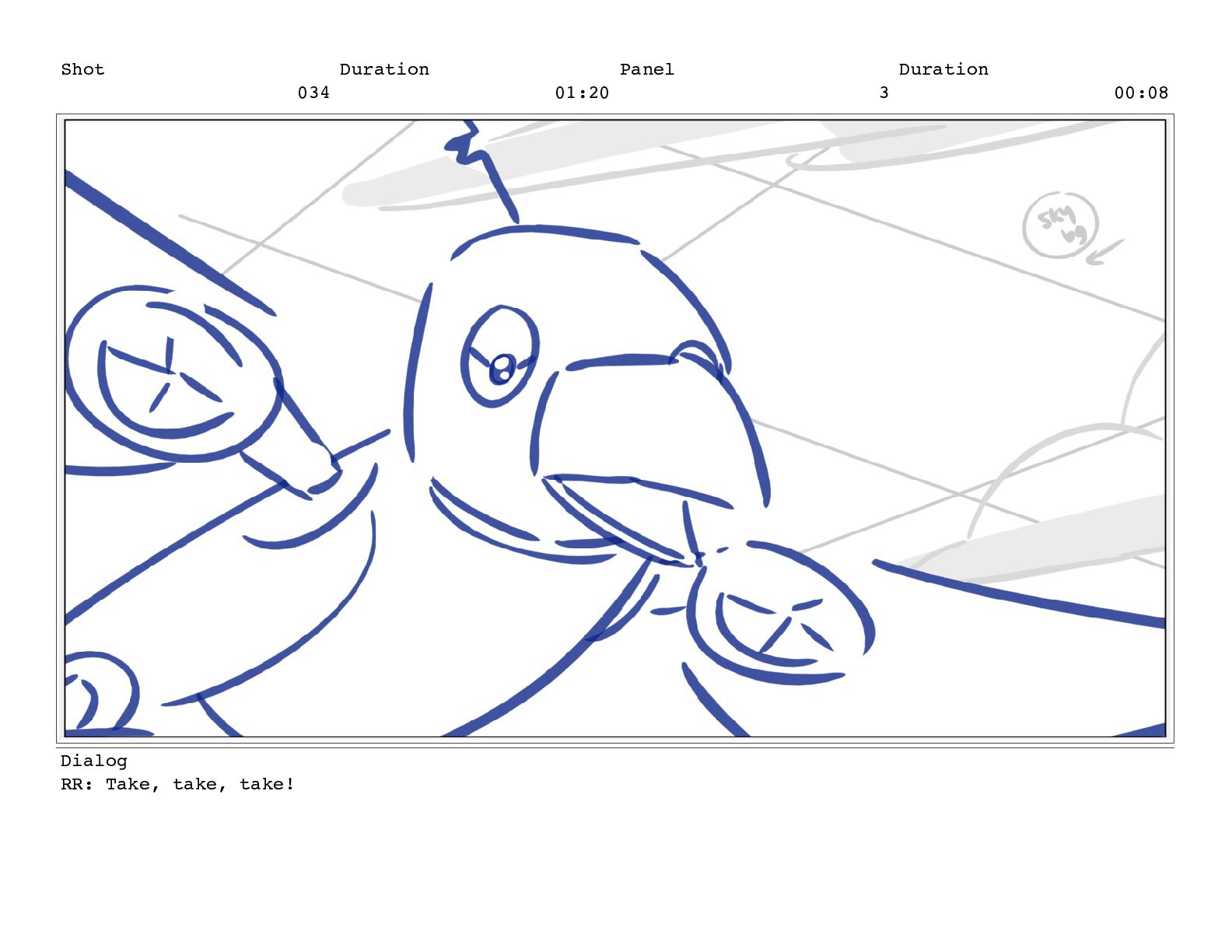 Shot 034 Duration 01:20 Panel 3 Duration 00:08 Dialog RR: