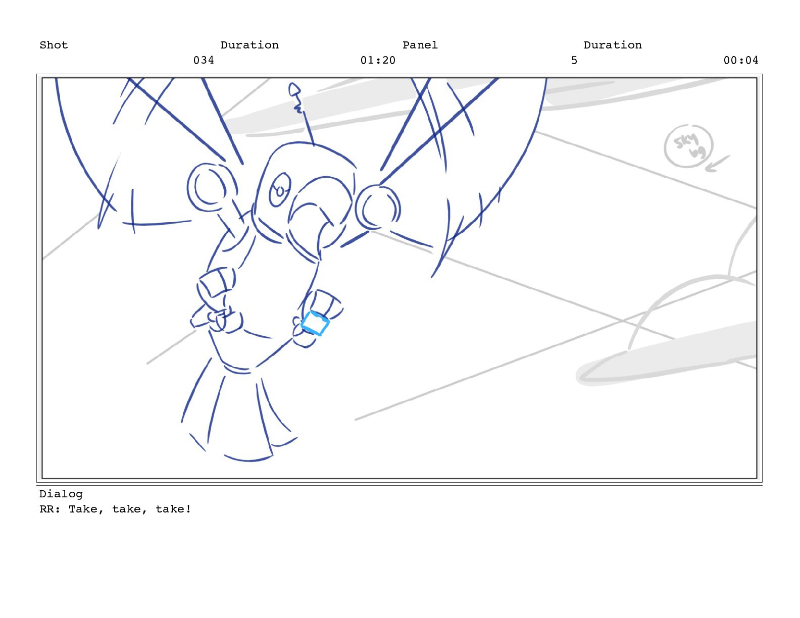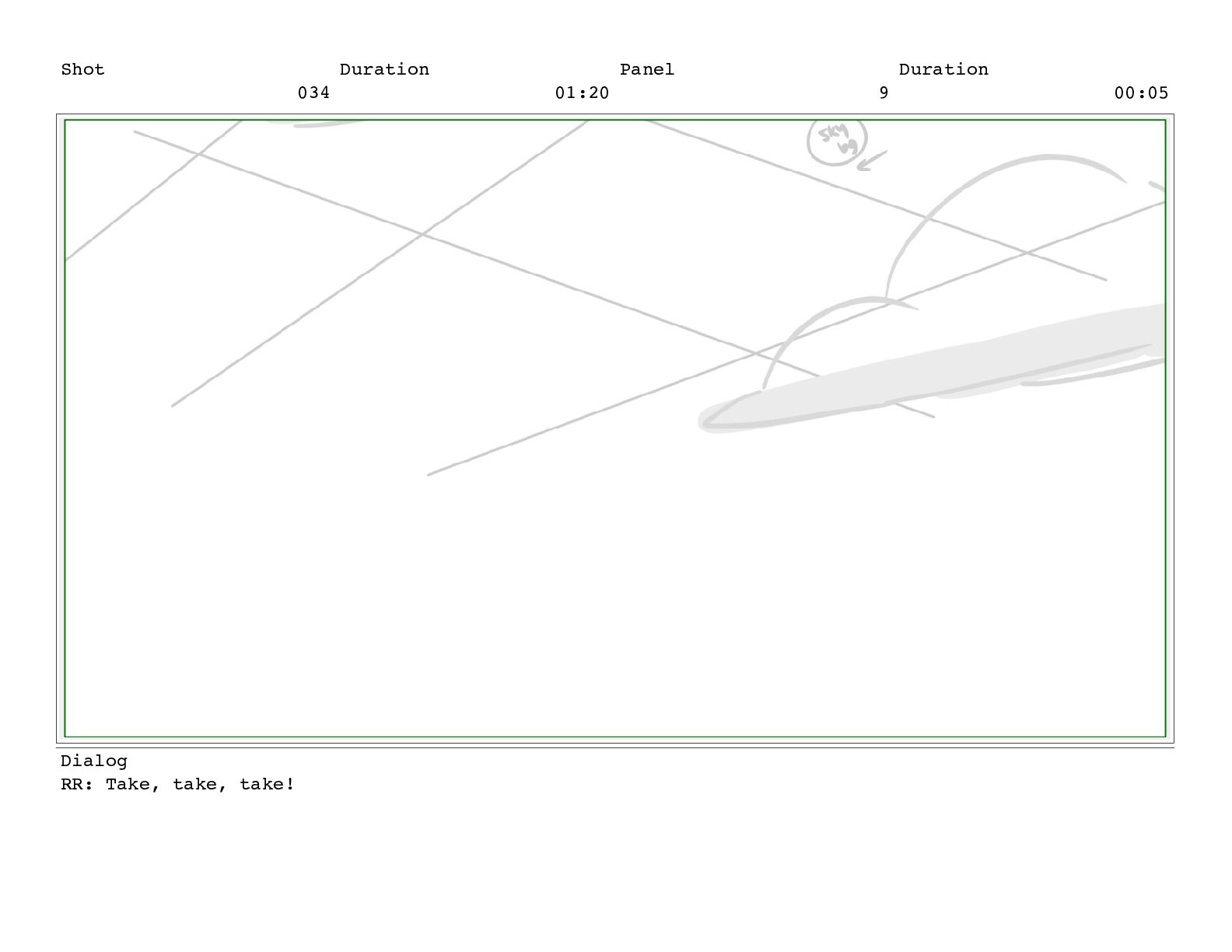 Shot 034 Duration 01:20 Panel 9 Duration 00:05 Dialog RR: