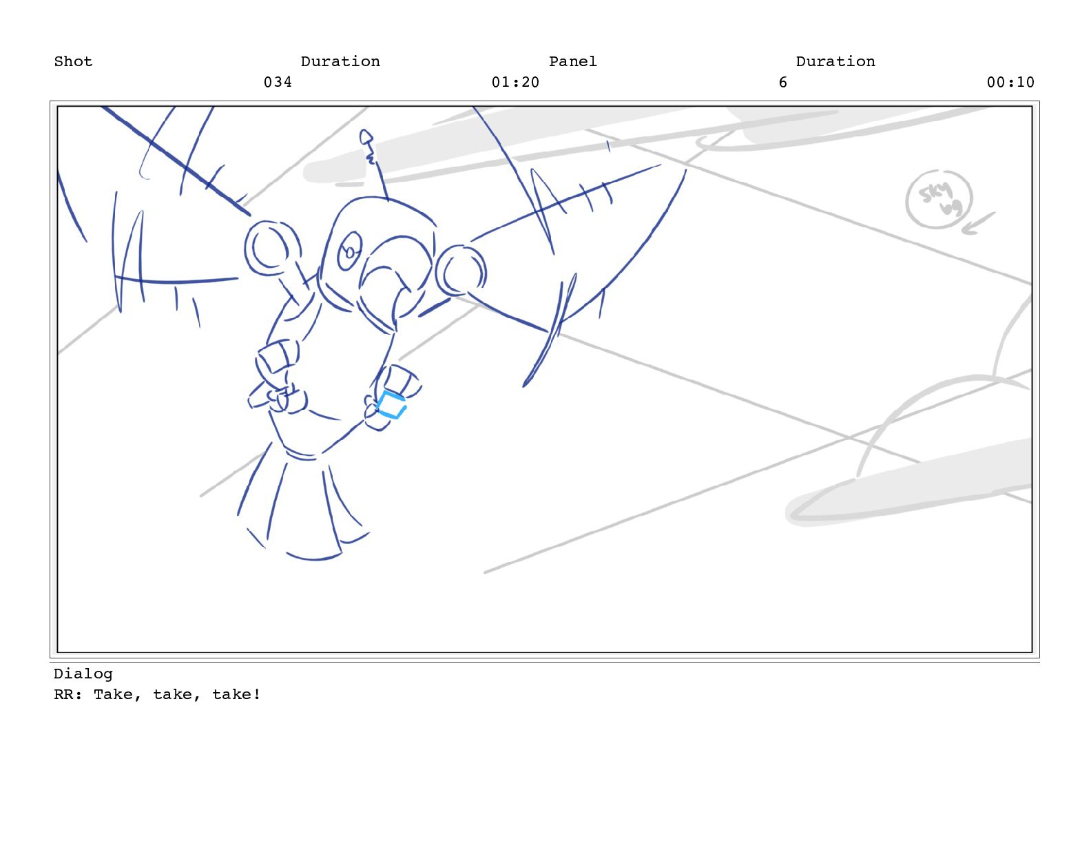 Shot 034 Duration 01:20 Panel 6 Duration 00:10 Dialog RR: