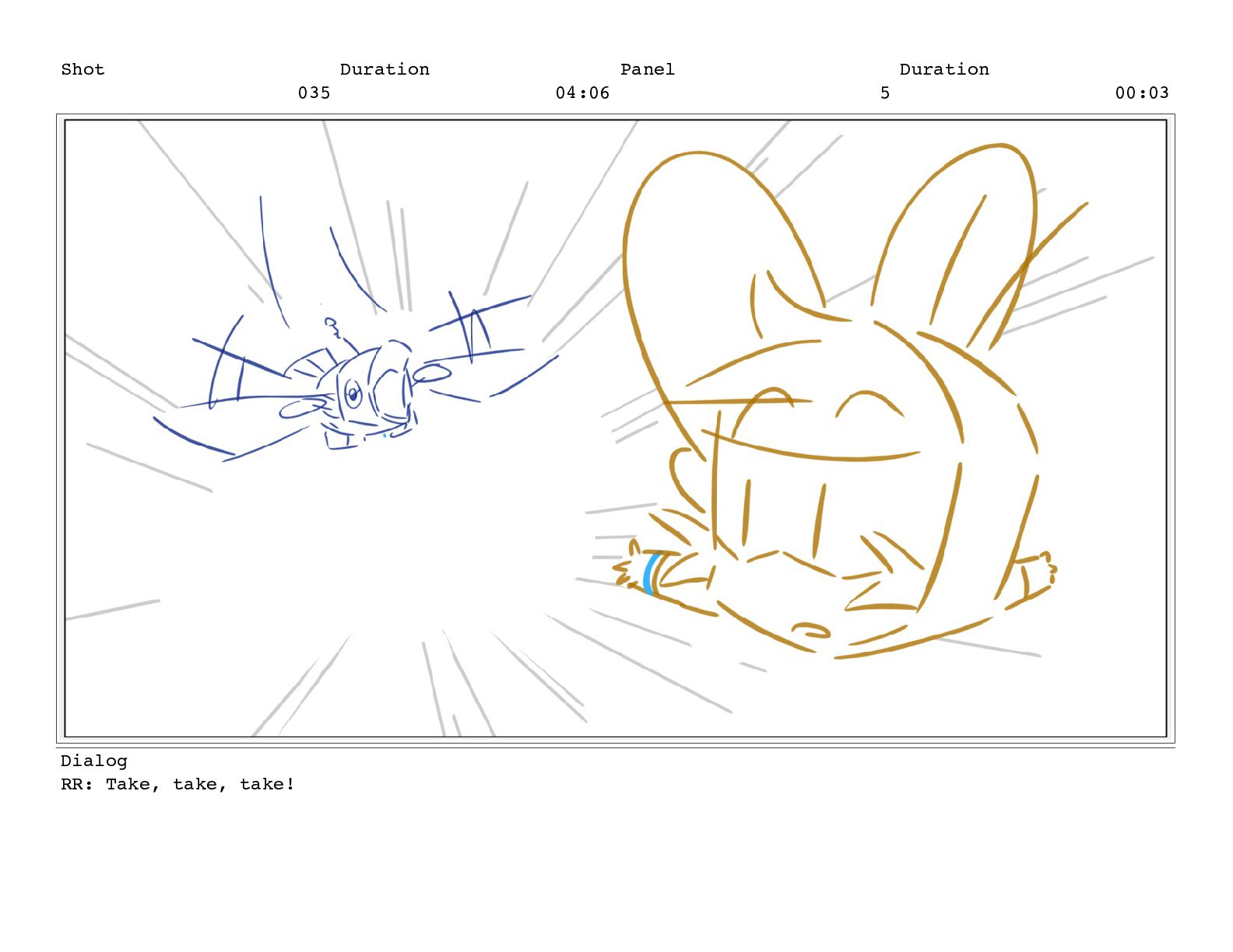 Shot 035 Duration 04:06 Panel 5 Duration 00:03 Dialog RR: