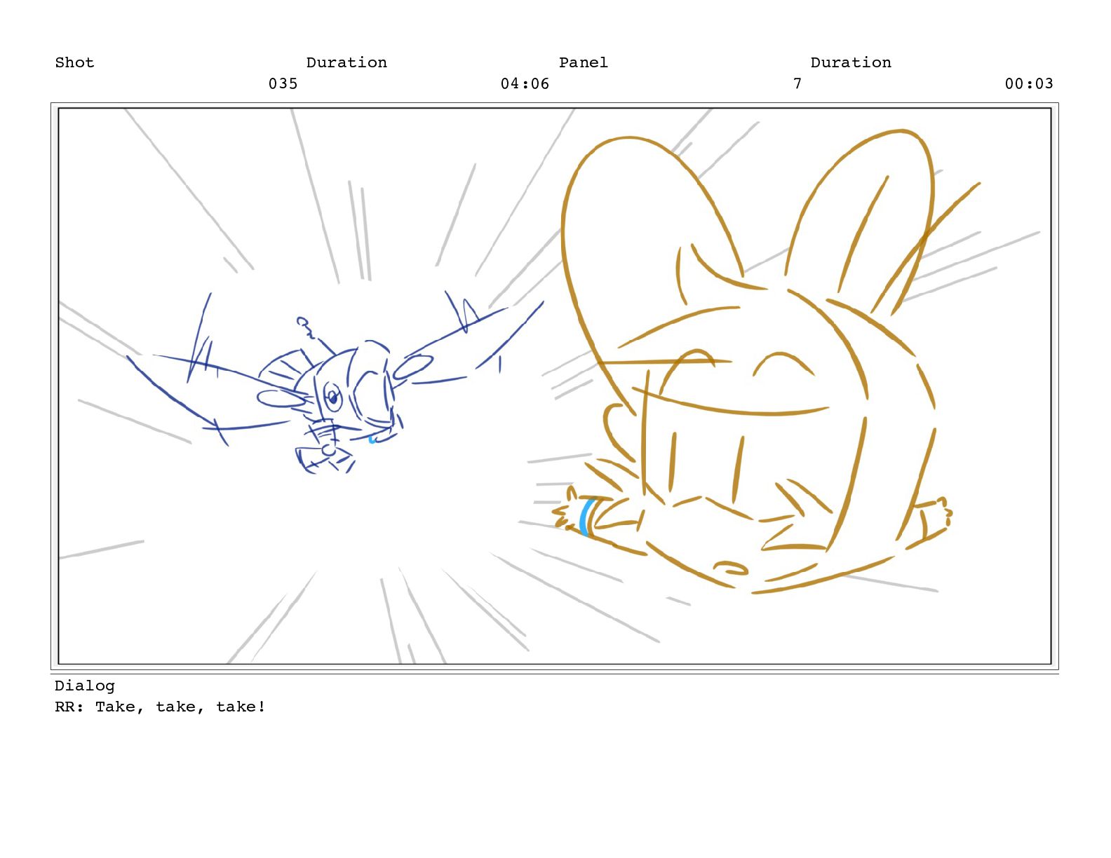 Shot 035 Duration 04:06 Panel 7 Duration 00:03 Dialog RR:
