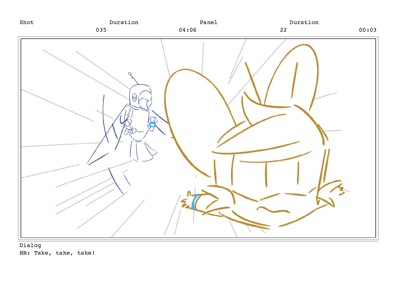 Shot 035 Duration 04:06 Panel 22 Duration 00:03 Dialog RR: