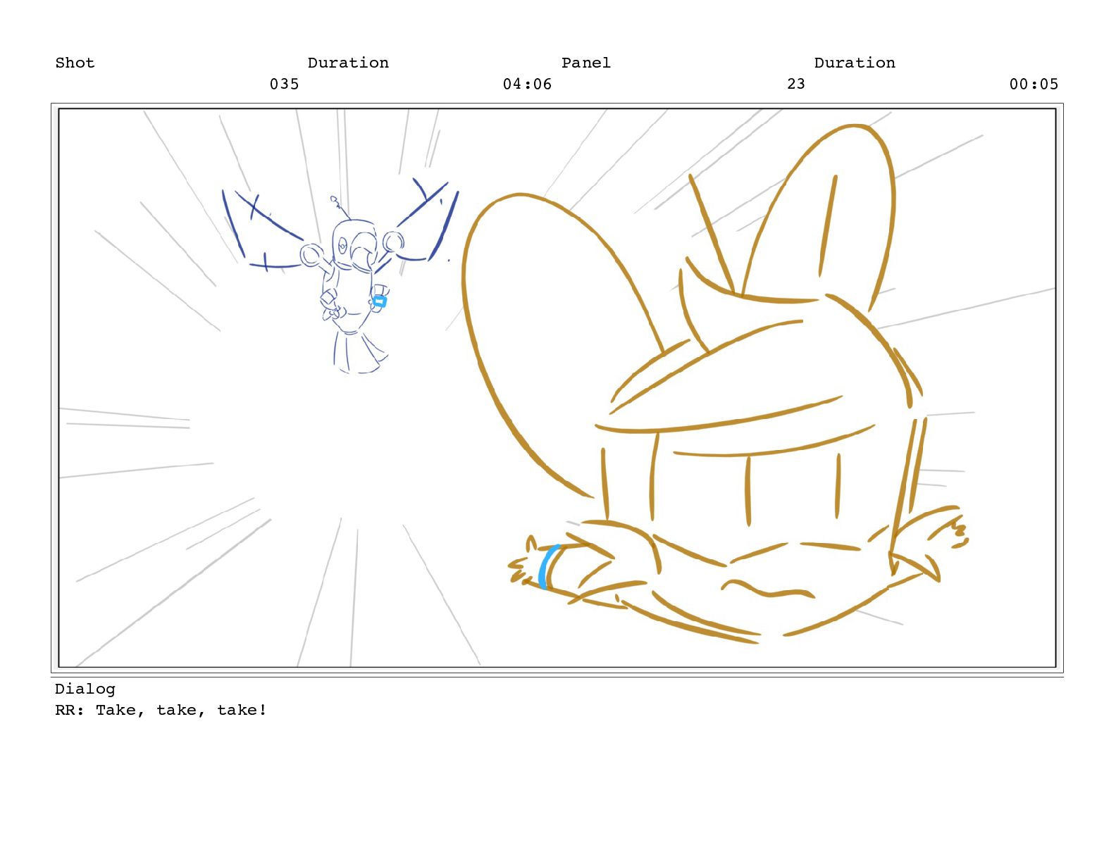 Shot 035 Duration 04:06 Panel 23 Duration 00:05 Dialog RR: