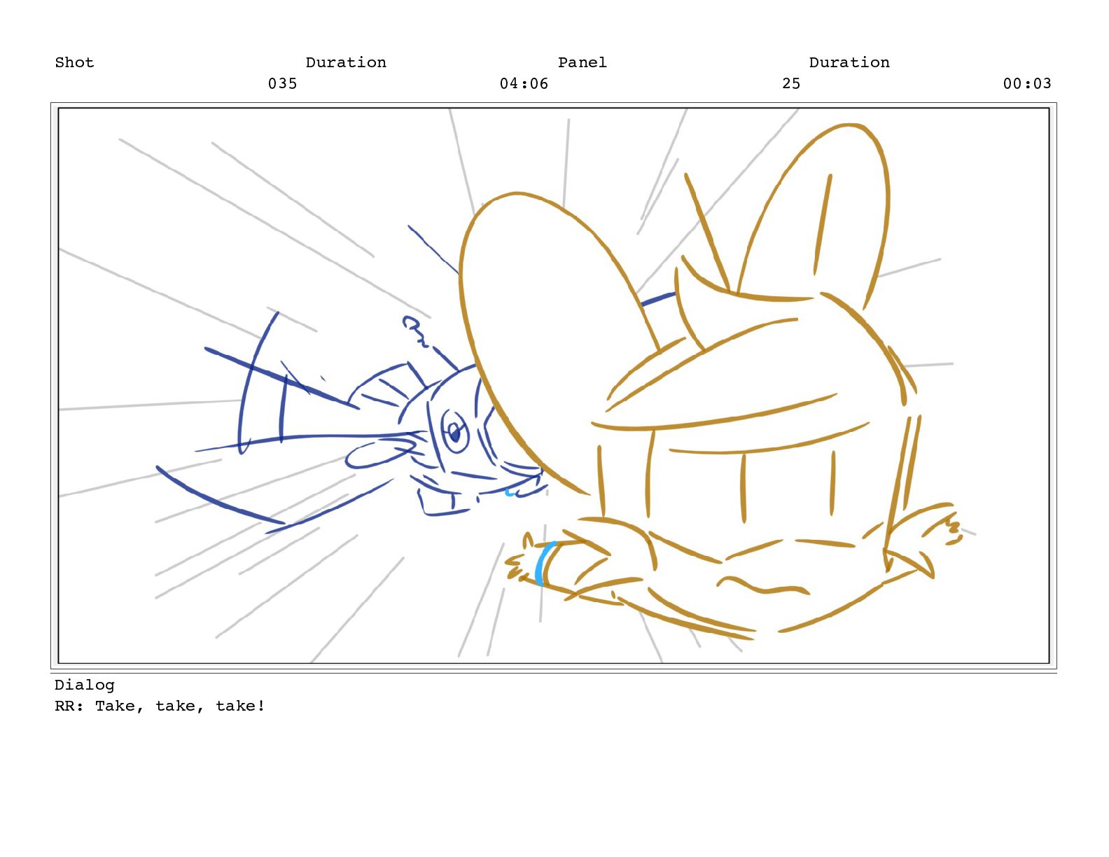 Shot 035 Duration 04:06 Panel 25 Duration 00:03 Dialog RR:
