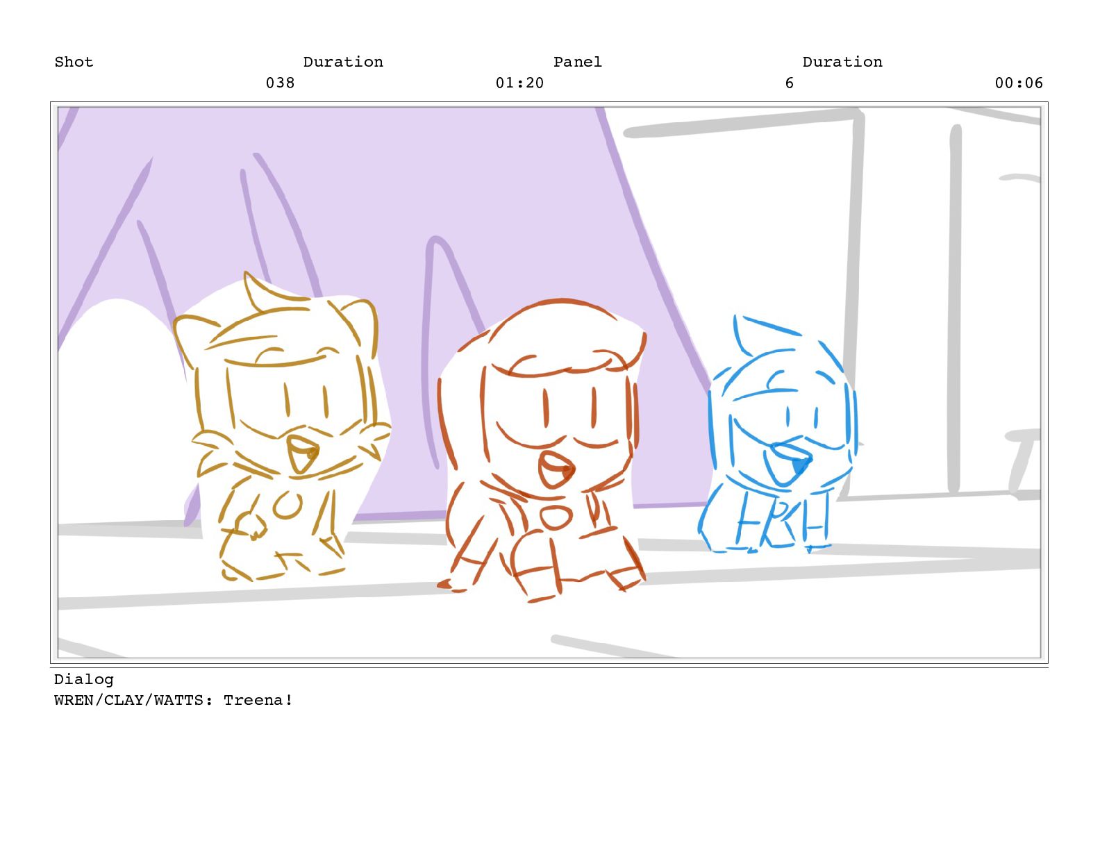 Shot 038 Duration 01:20 Panel 6 Duration 00:06 Dialog WREN/CLAY/WATTS: