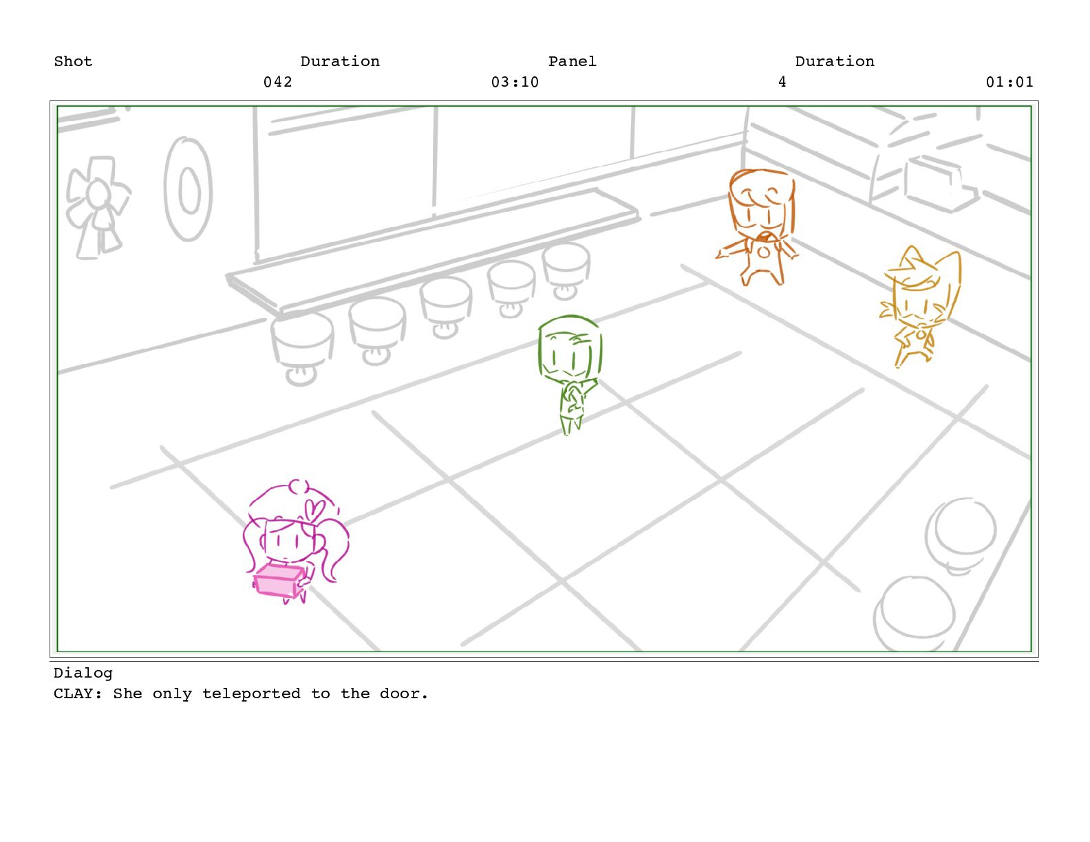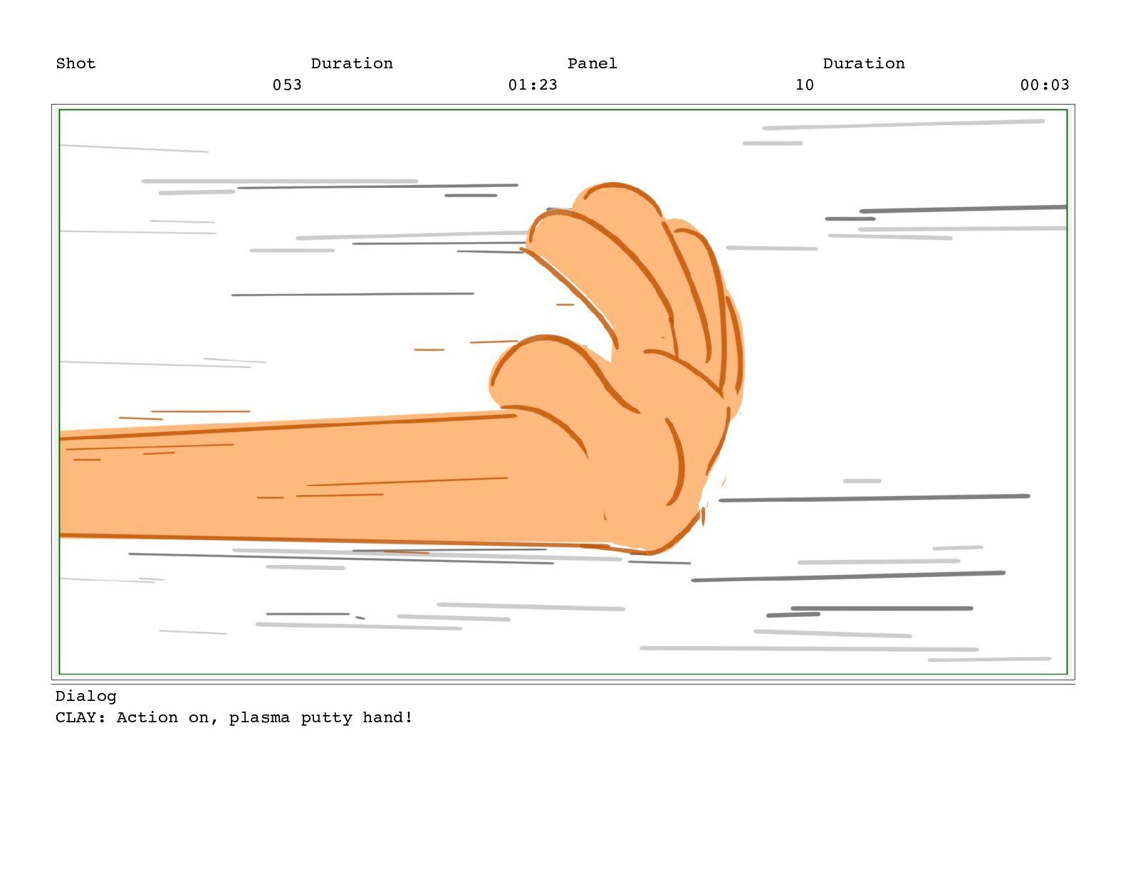 Shot 053 Duration 01:23 Panel 10 Duration 00:03 Dialog CLAY: