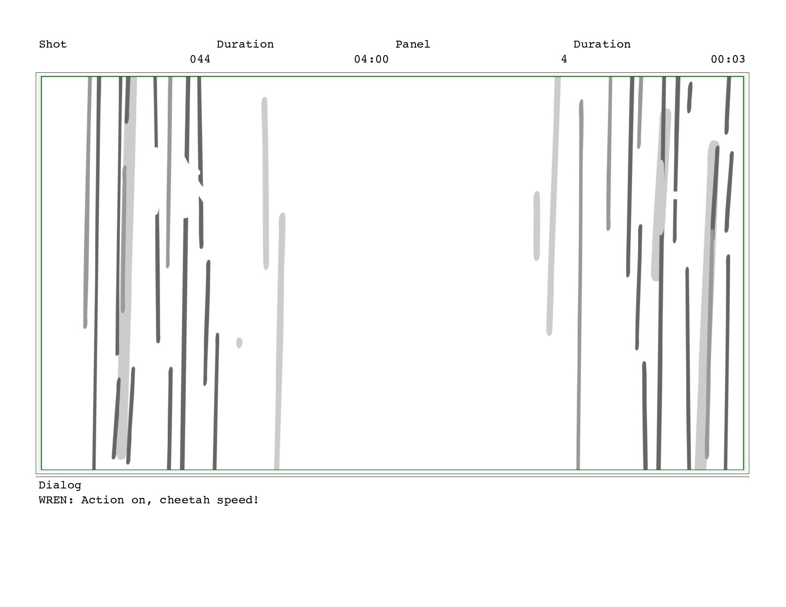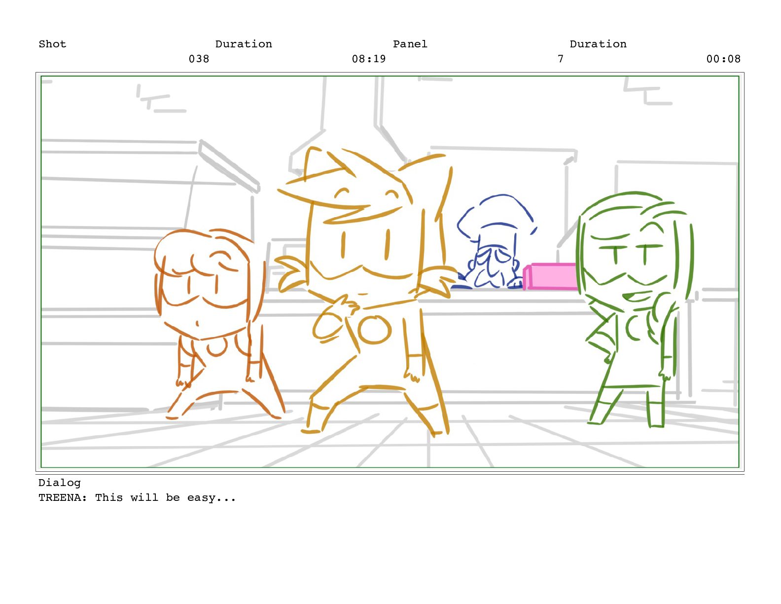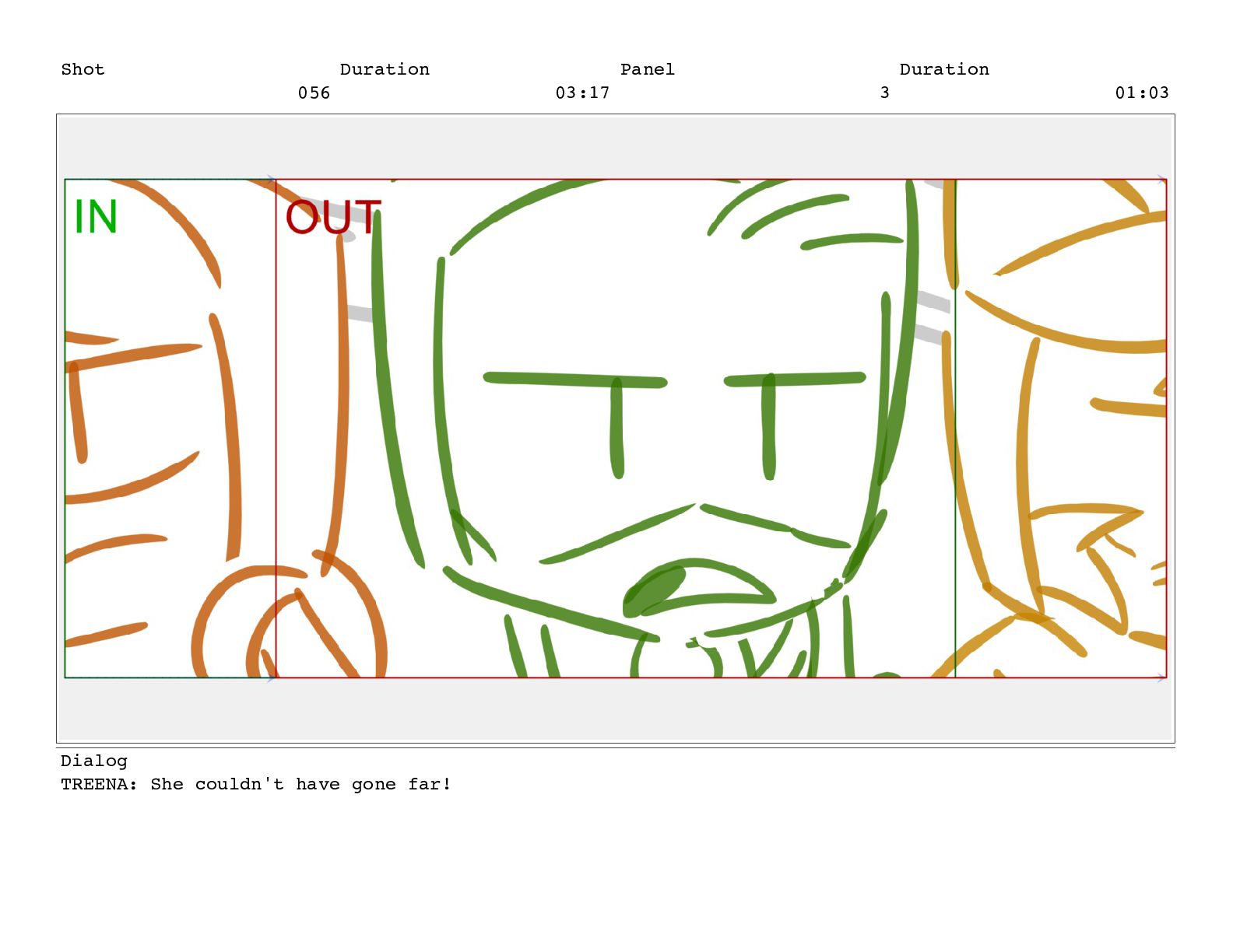 Shot 056 Duration 03:17 Panel 3 Duration 01:03 Dialog TREENA: