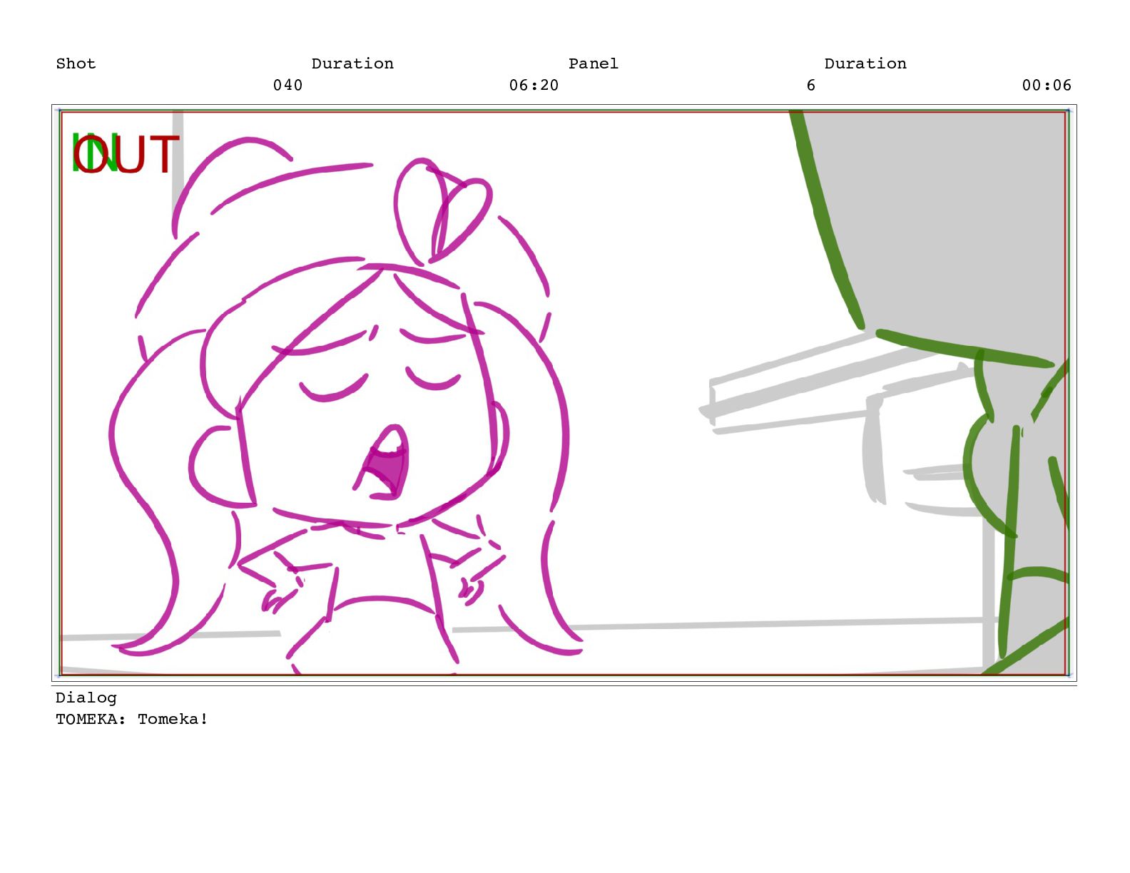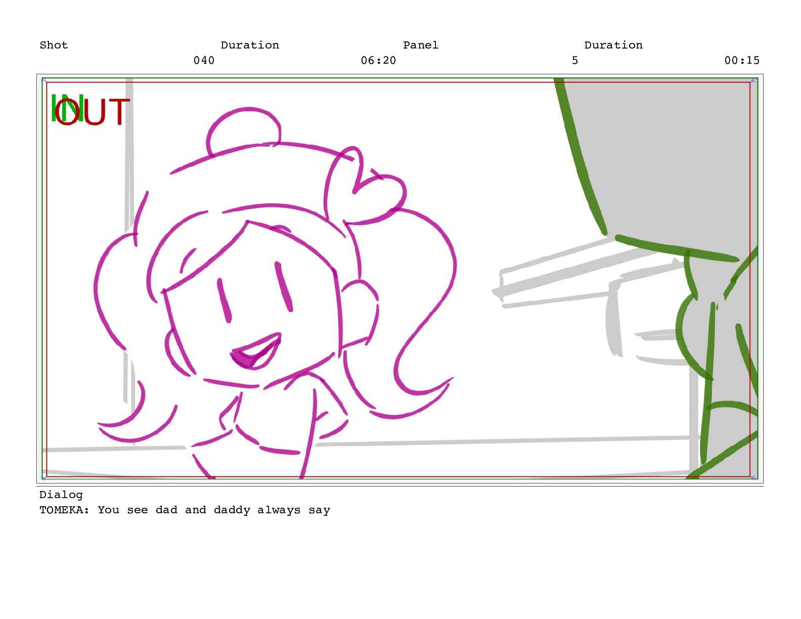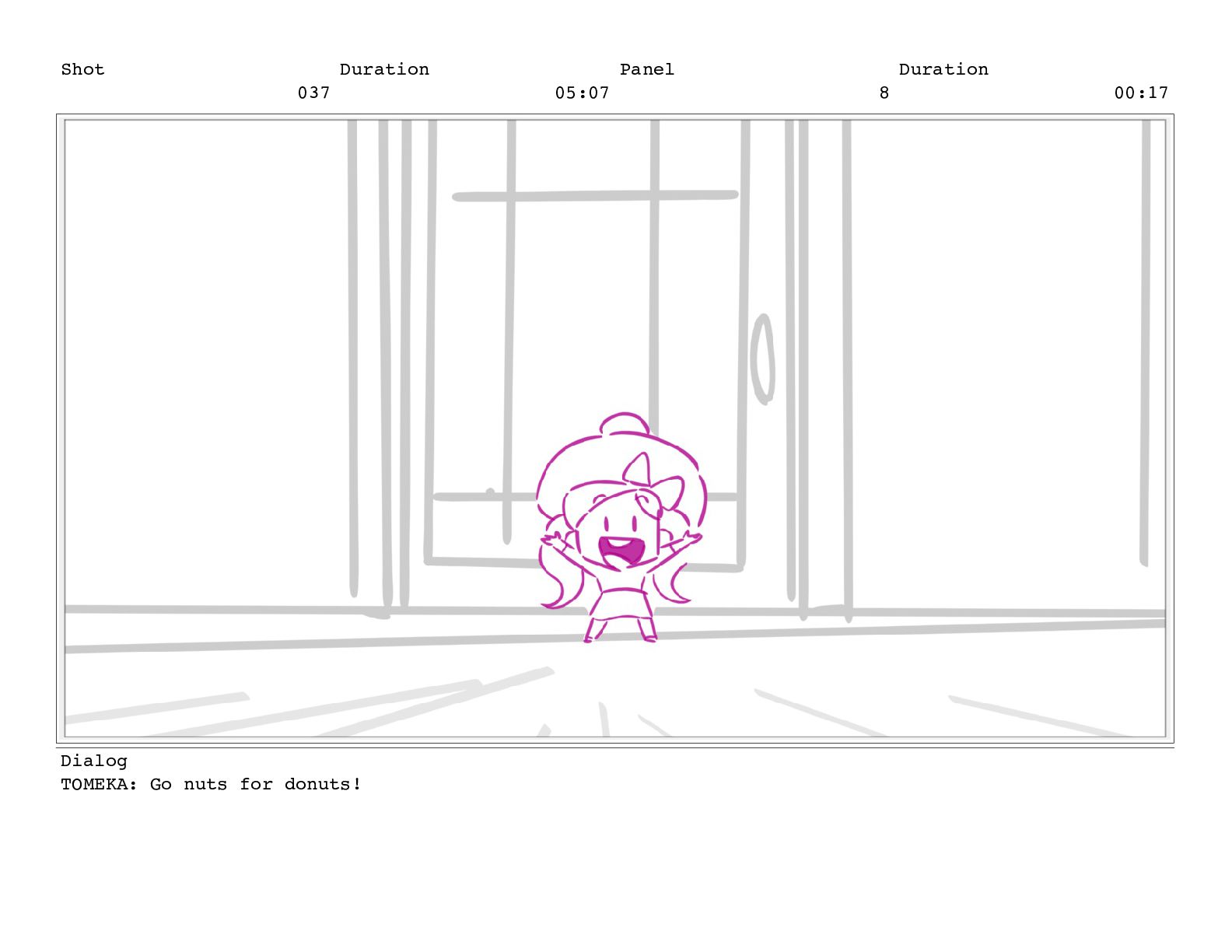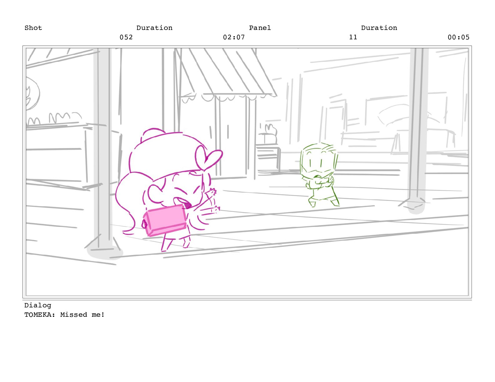 Shot 052 Duration 02:07 Panel 11 Duration 00:05 Dialog TOMEKA: