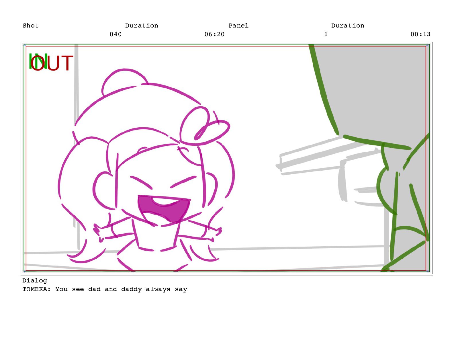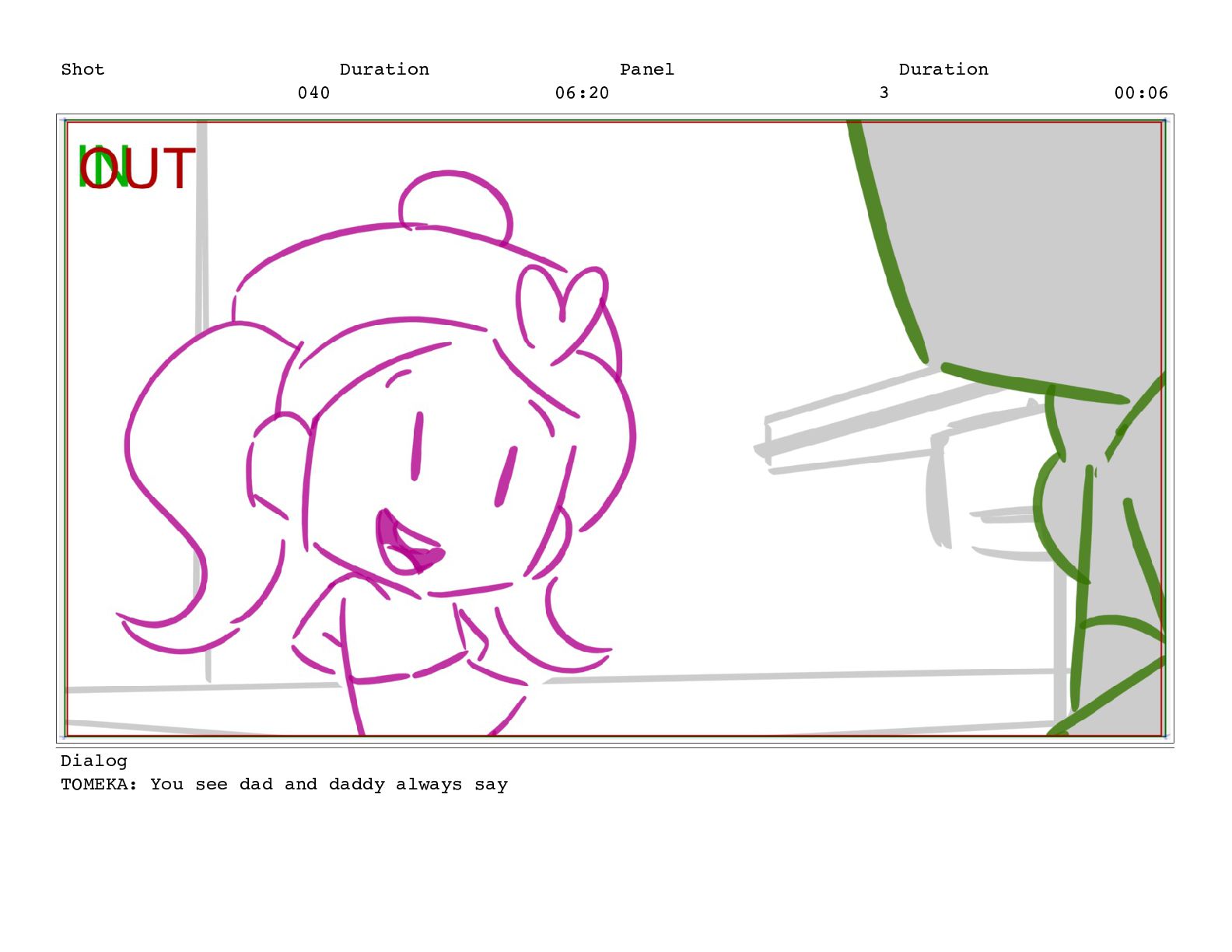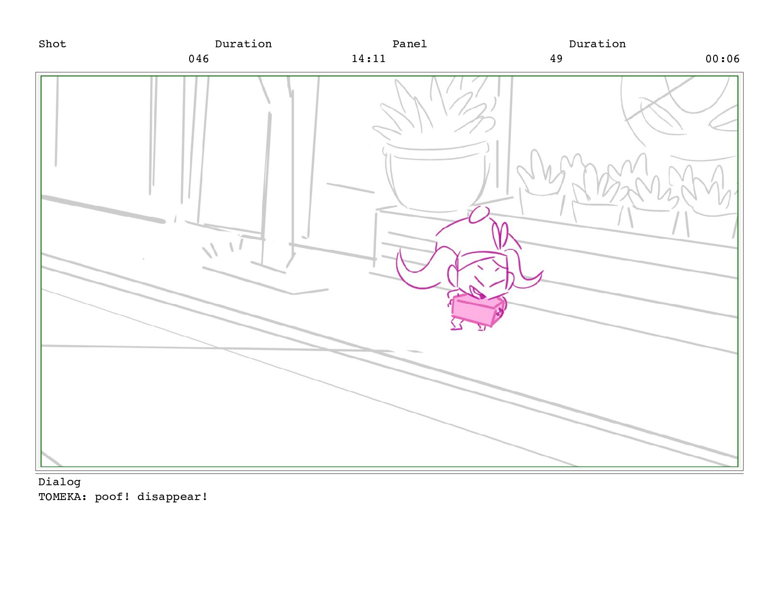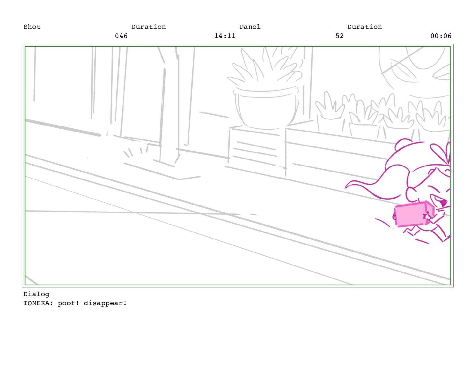 Shot 052 Duration 02:07 Panel 11 Duration 00:05 Dialog TOMEKA:
