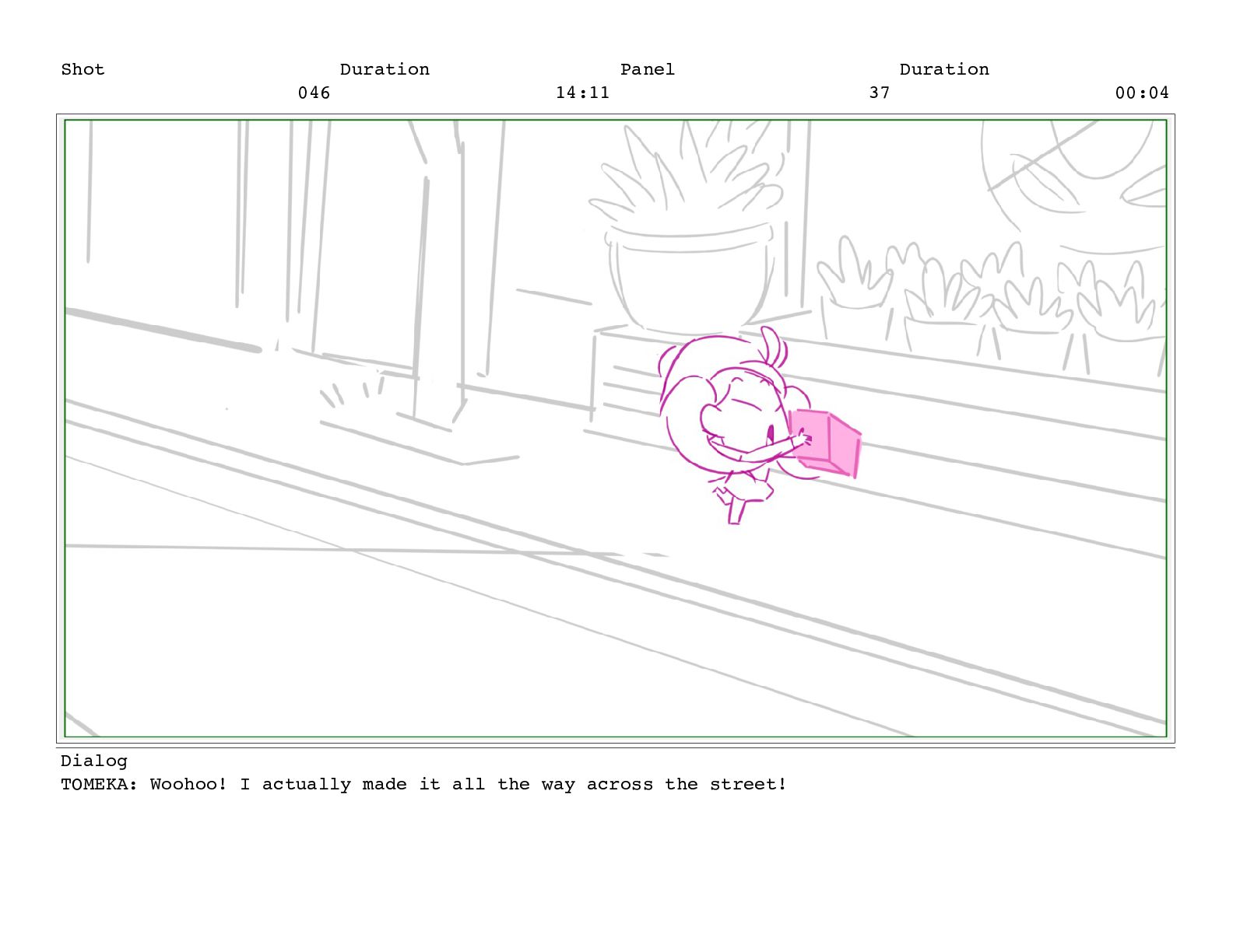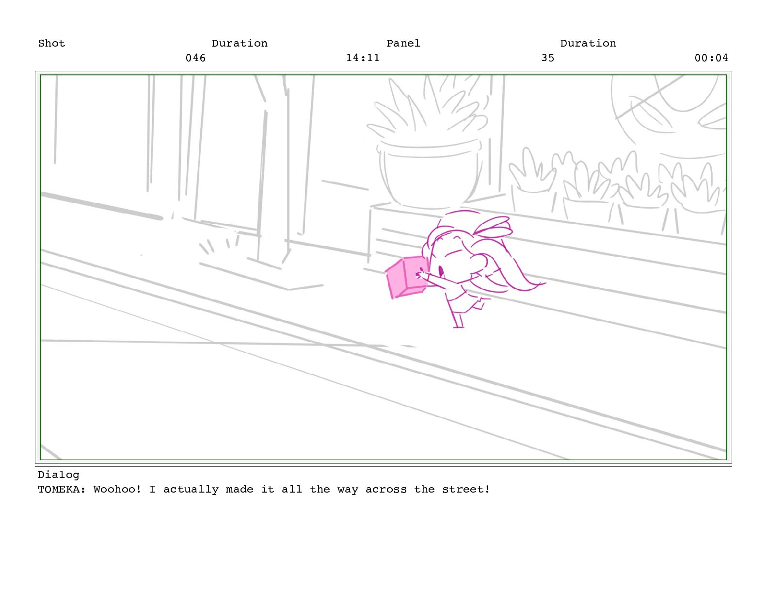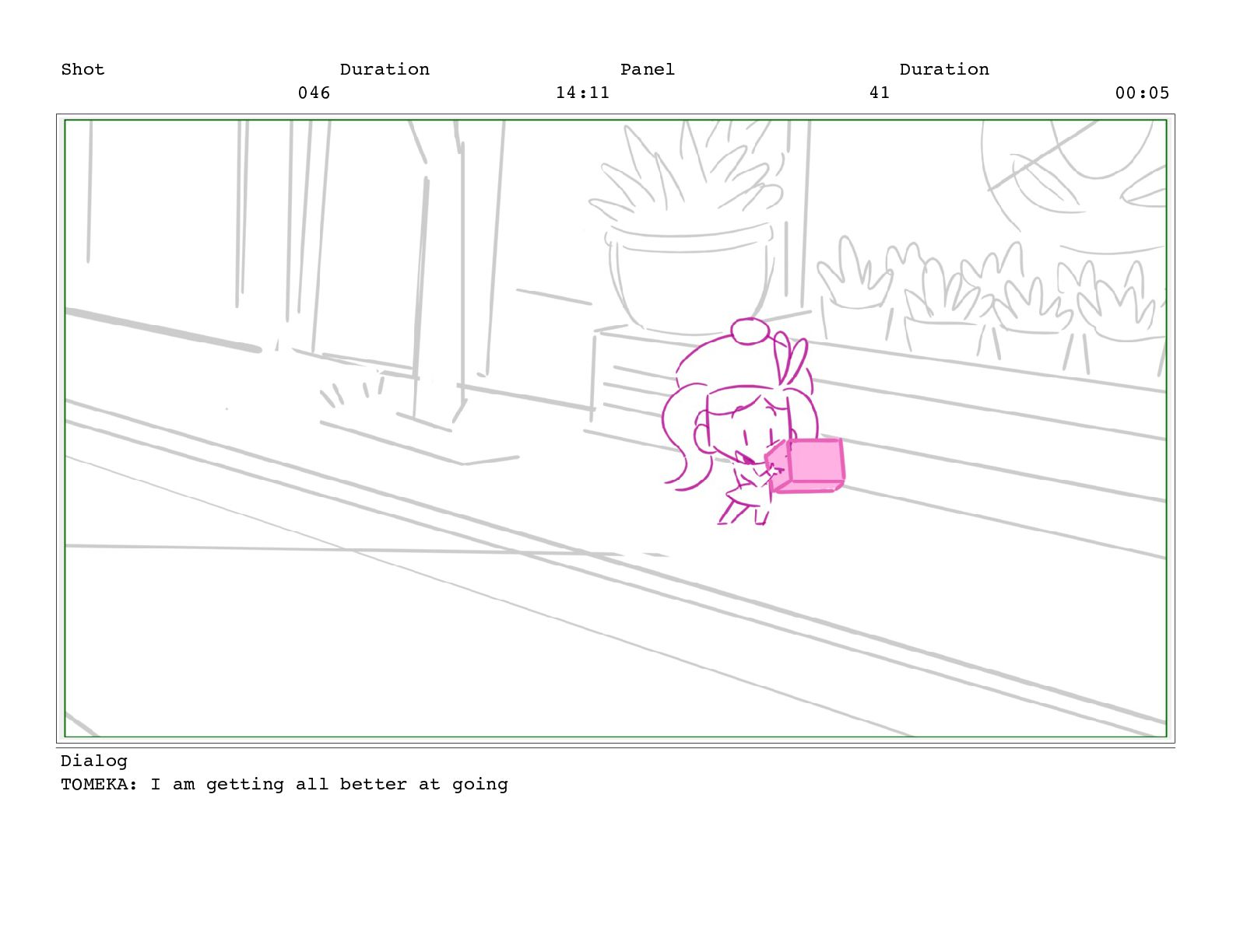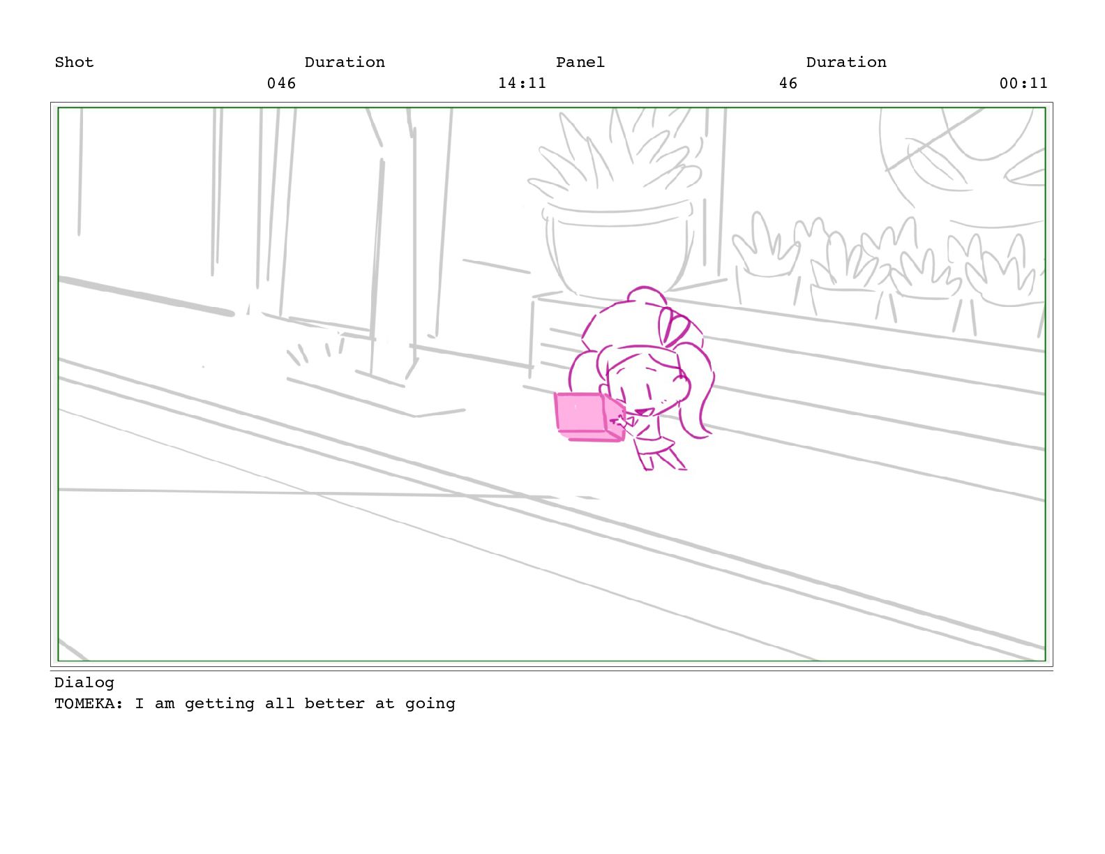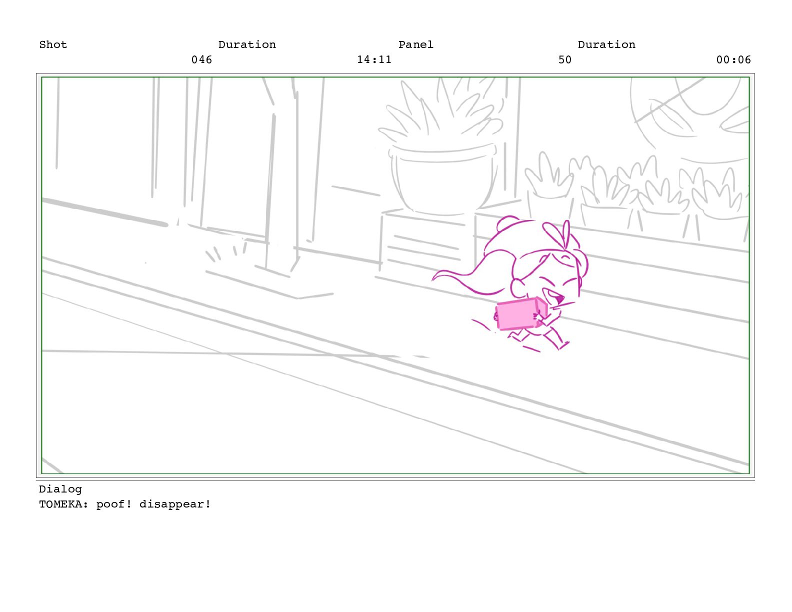 Shot 052 Duration 02:07 Panel 11 Duration 00:05 Dialog TOMEKA: