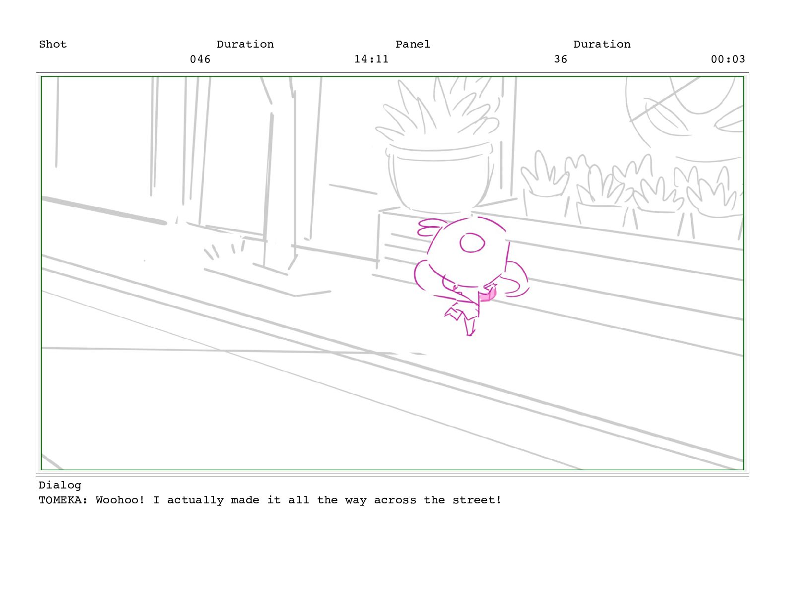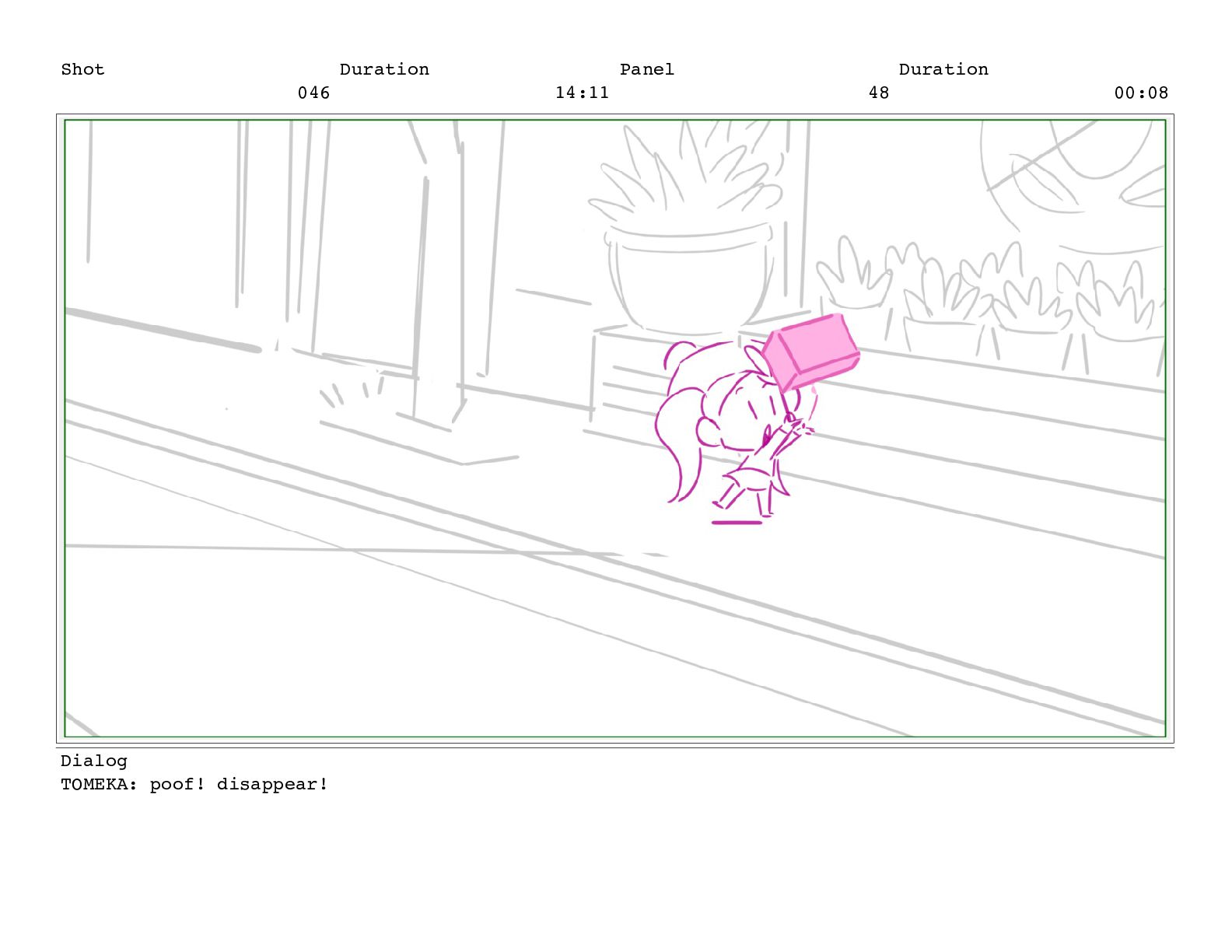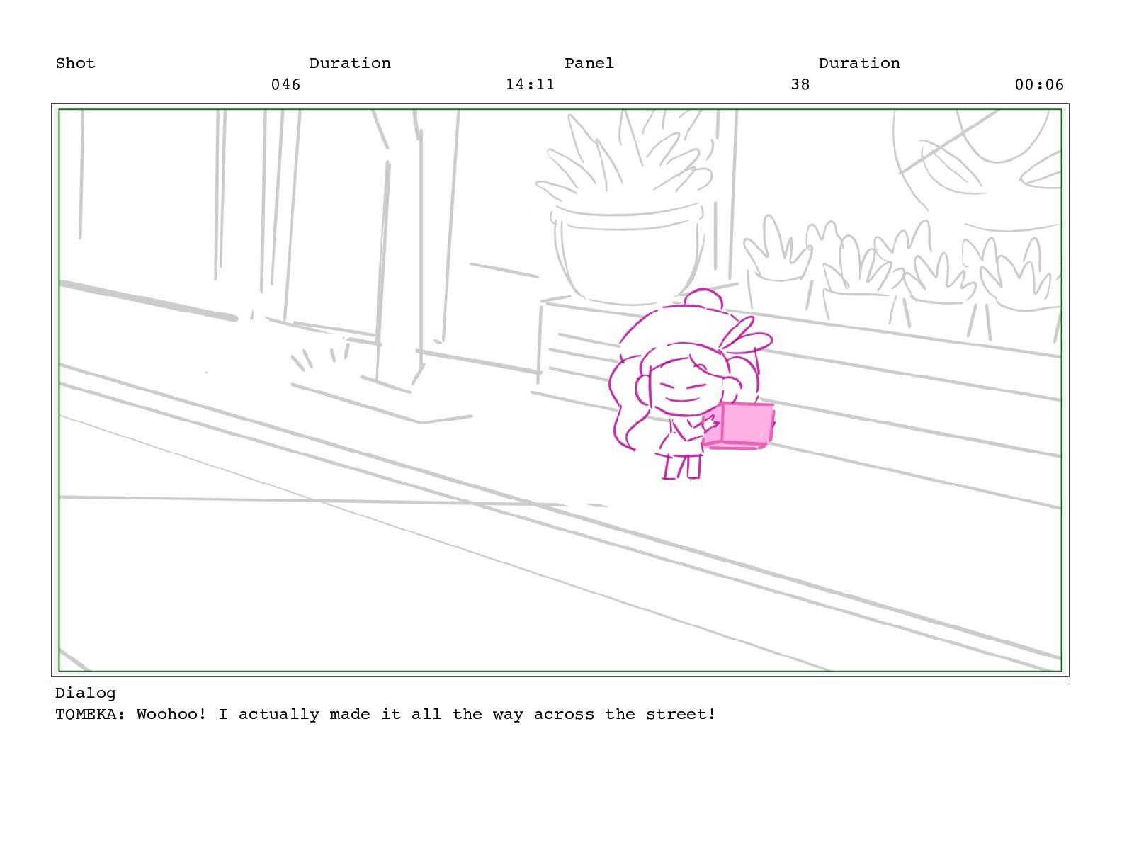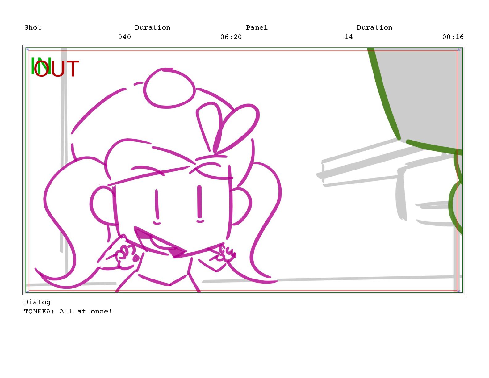 Shot 052 Duration 02:07 Panel 11 Duration 00:05 Dialog TOMEKA: