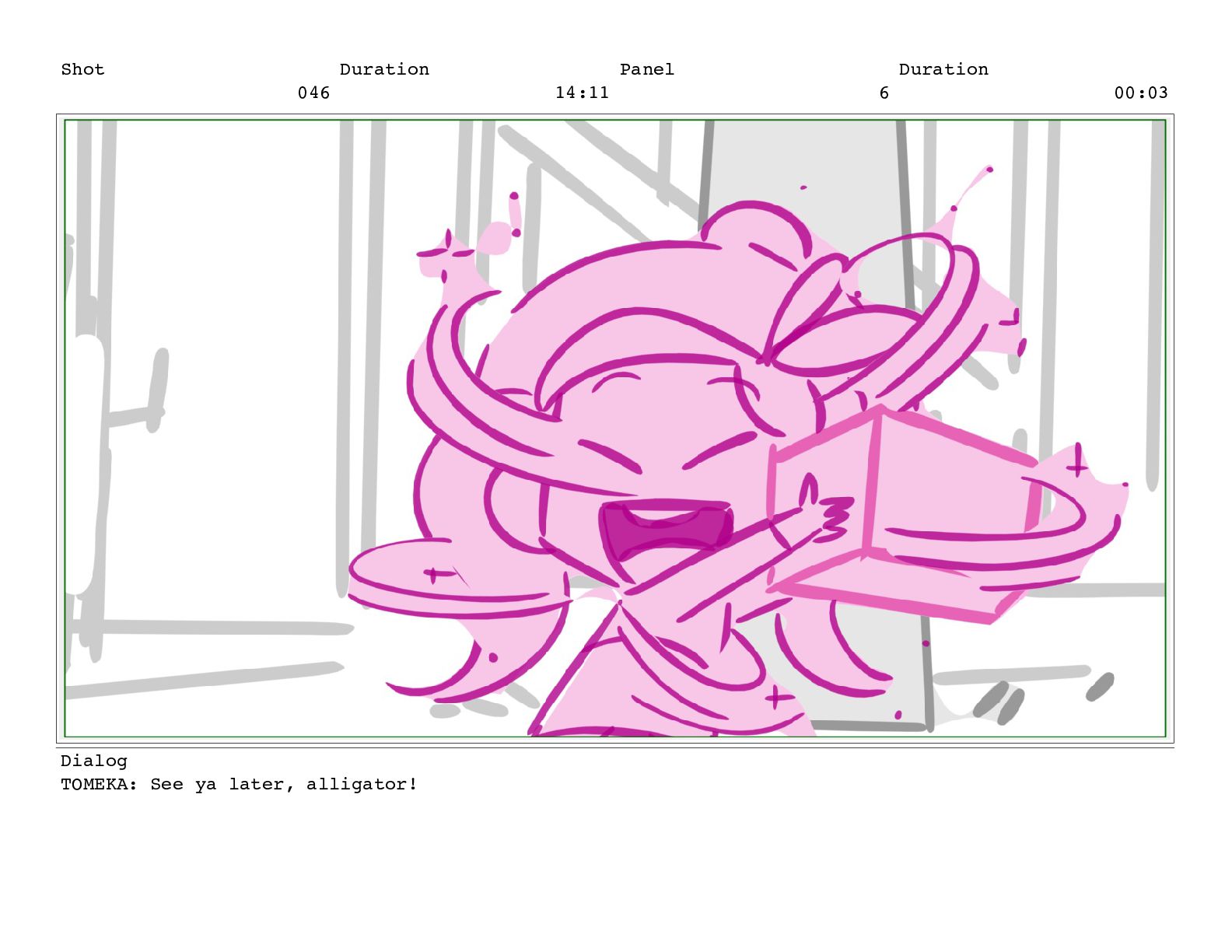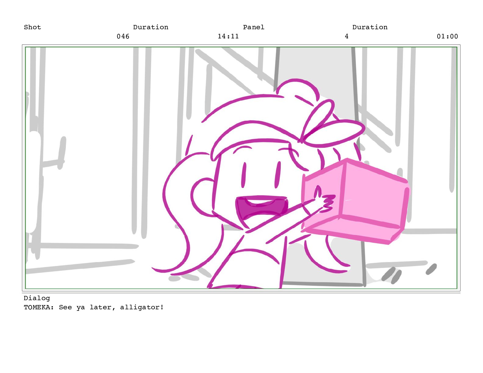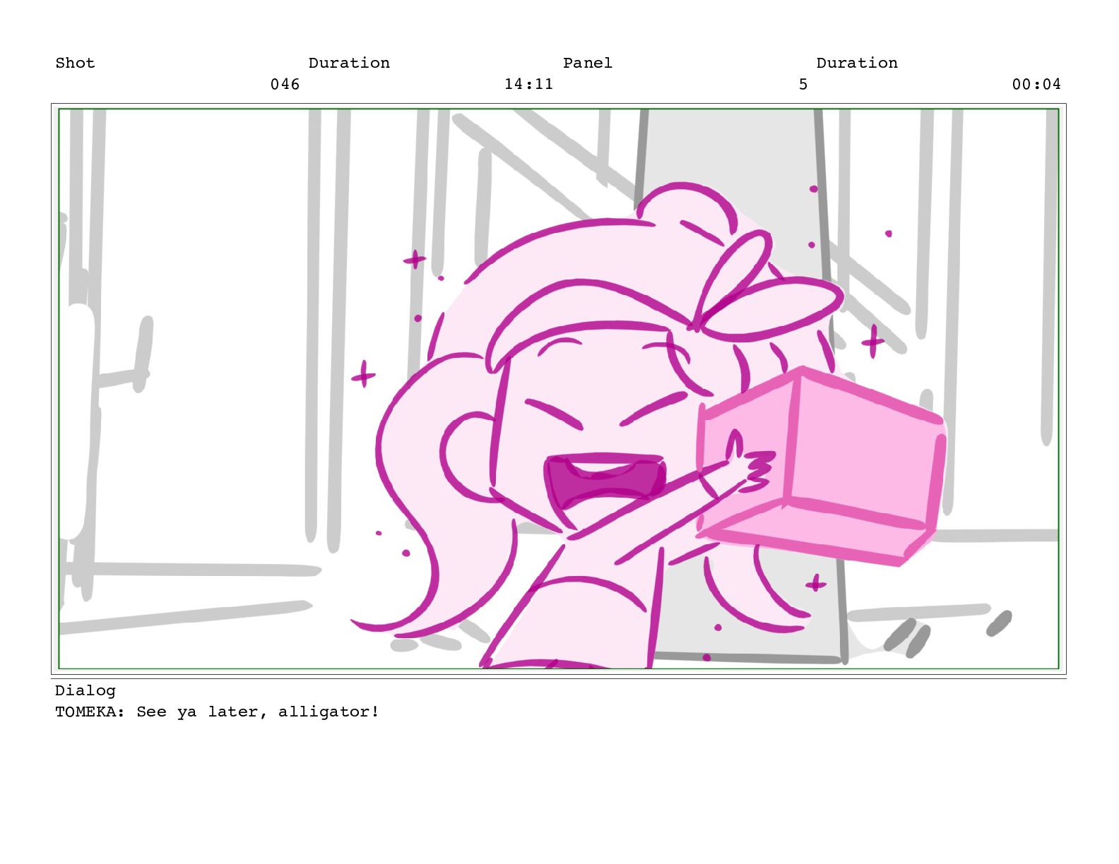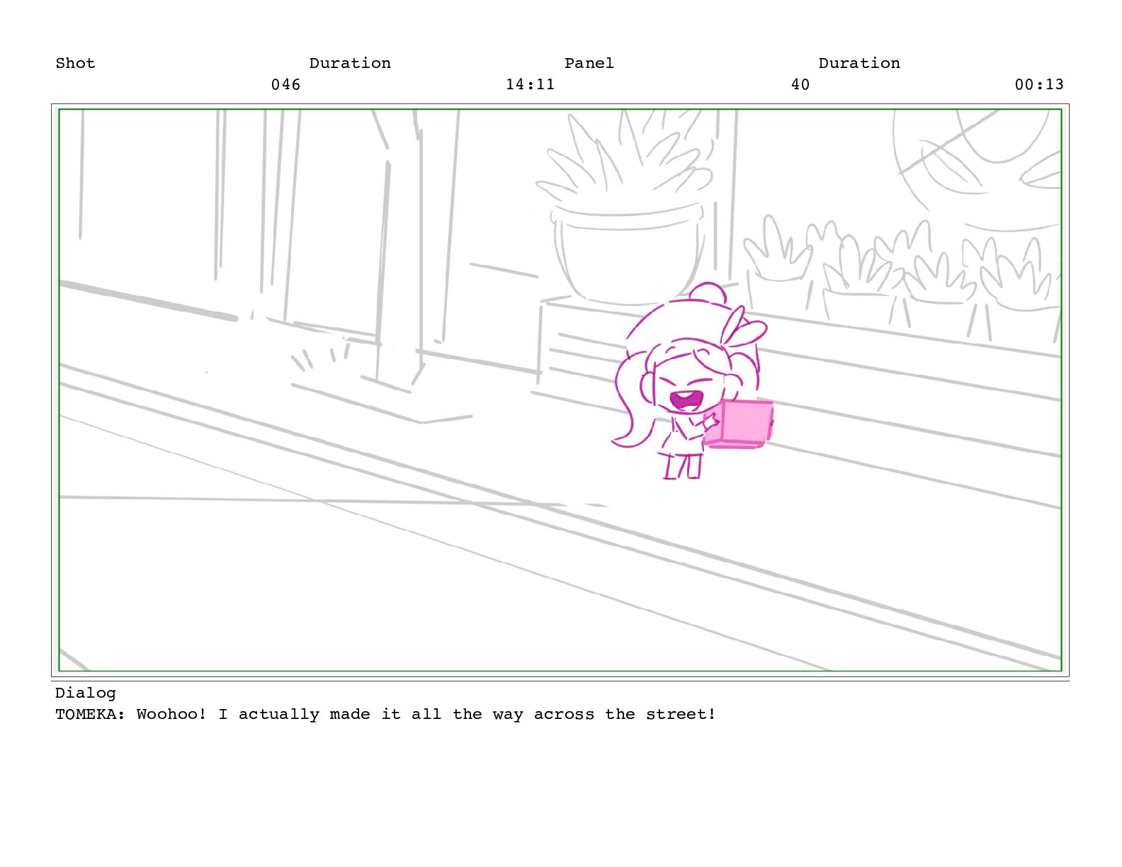 Shot 052 Duration 02:07 Panel 11 Duration 00:05 Dialog TOMEKA: