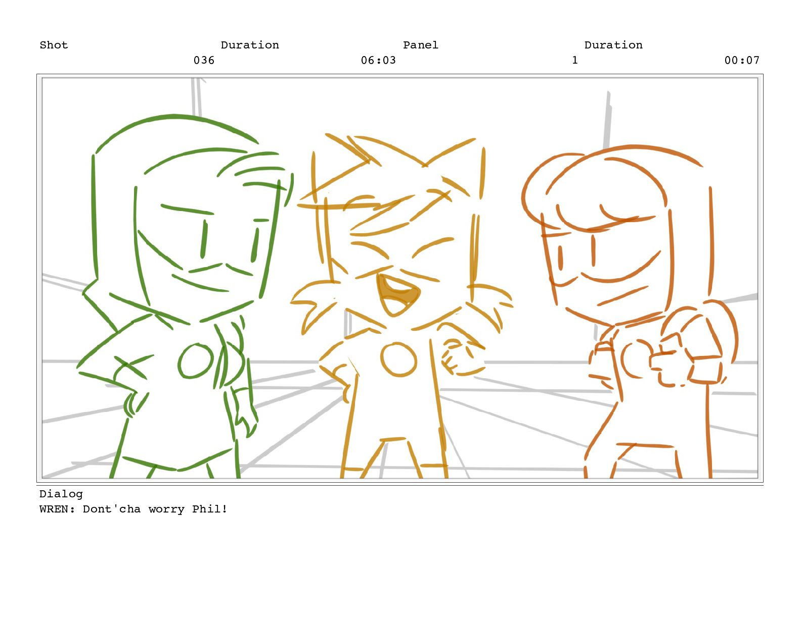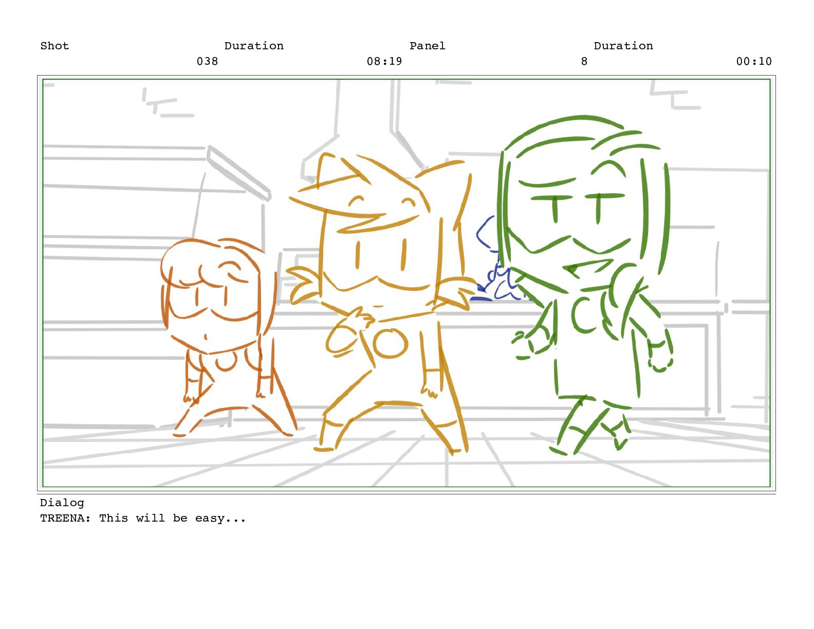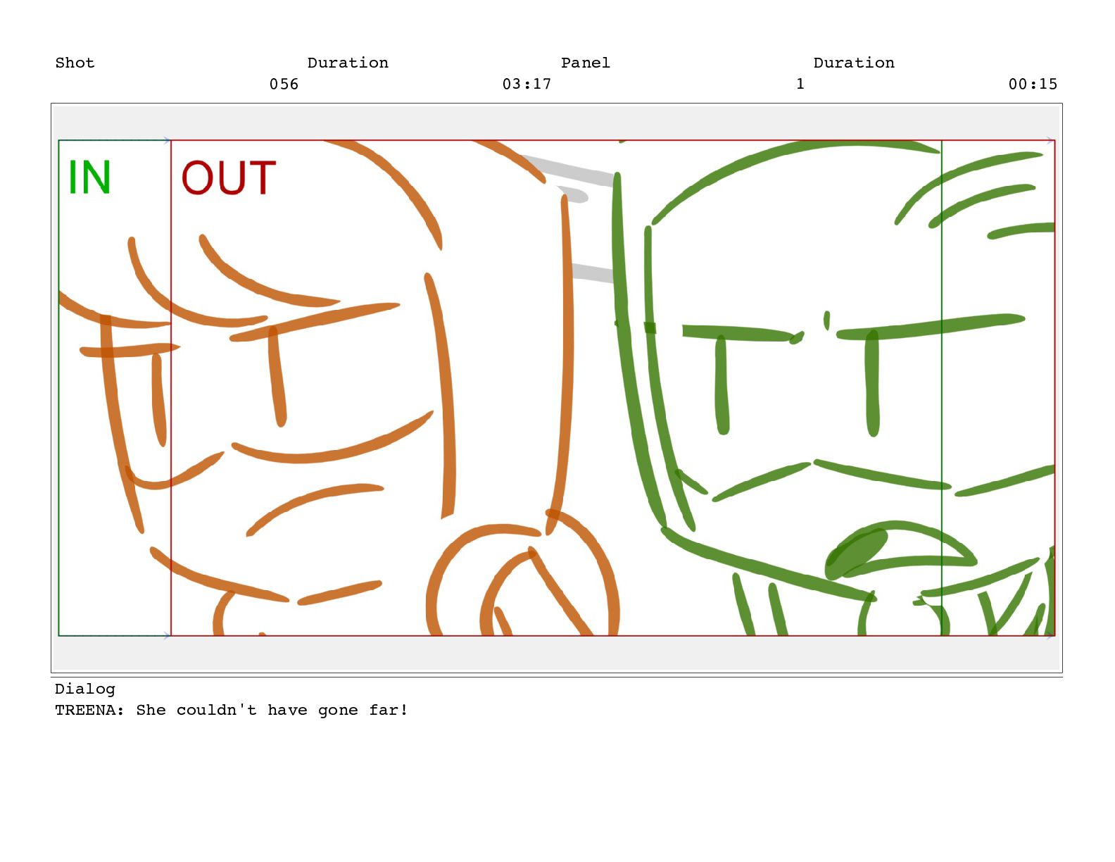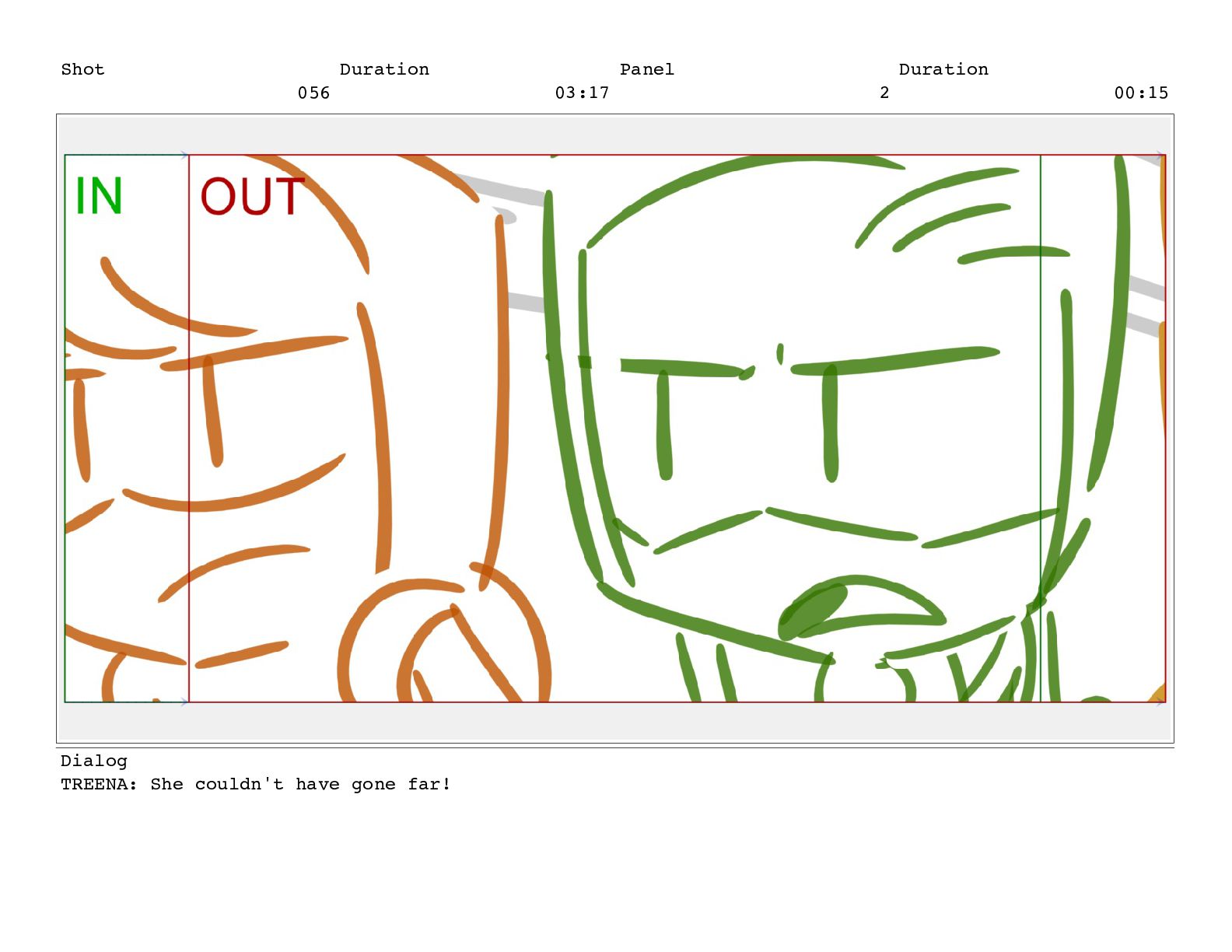 Shot 056 Duration 03:17 Panel 1 Duration 00:15 Dialog TREENA: