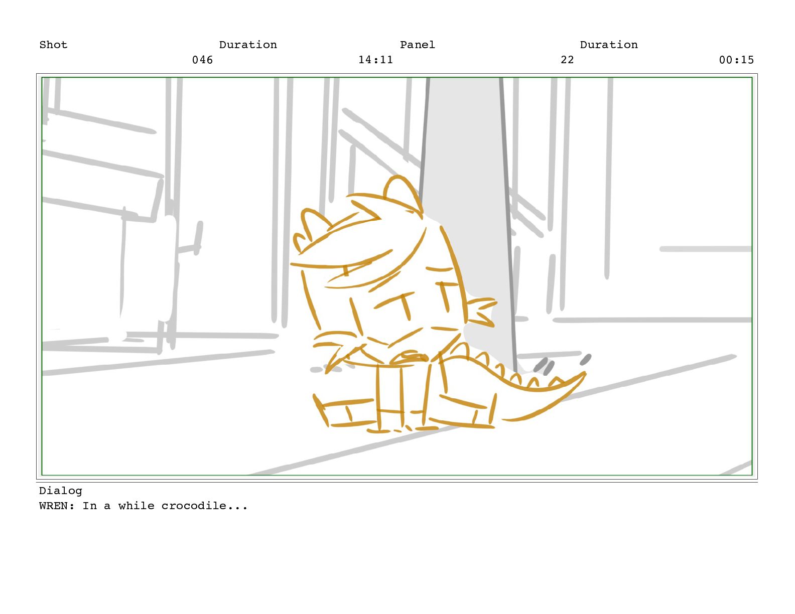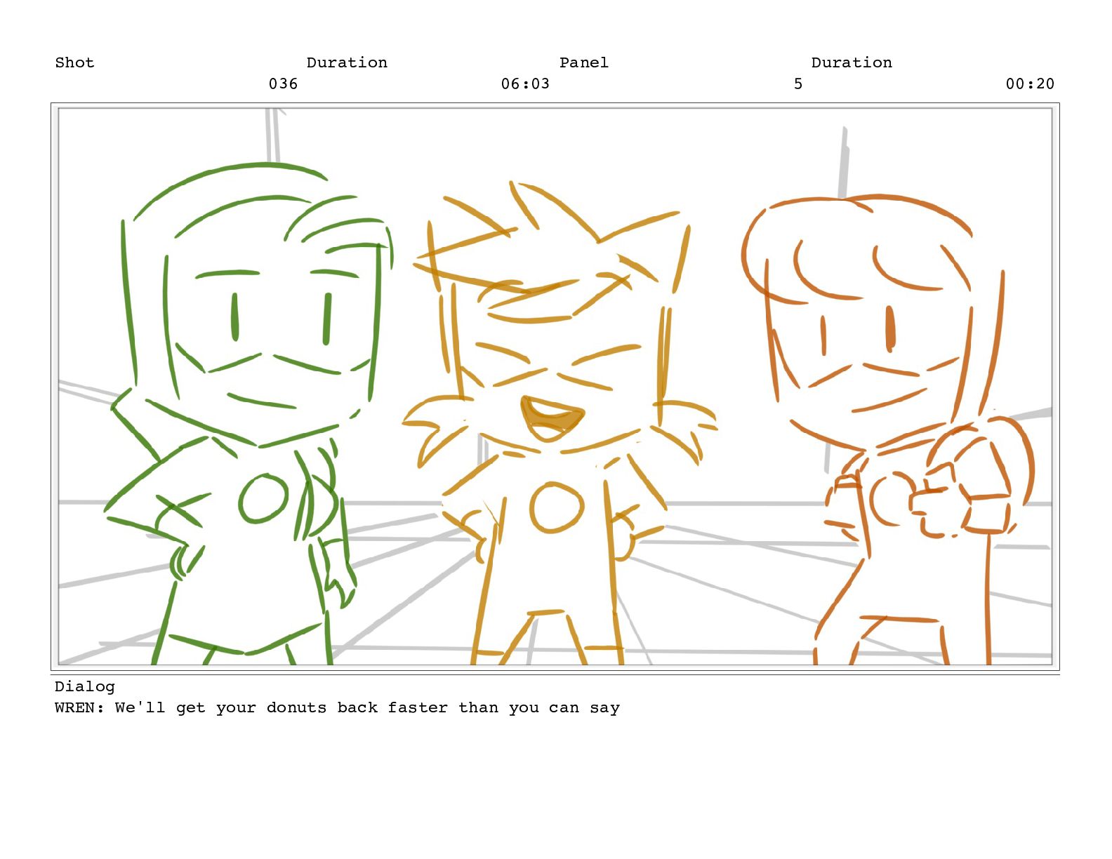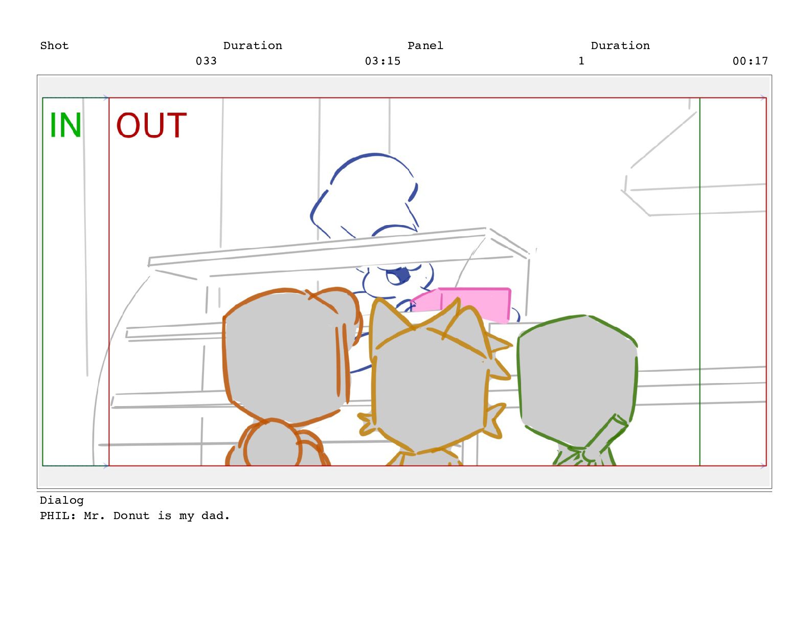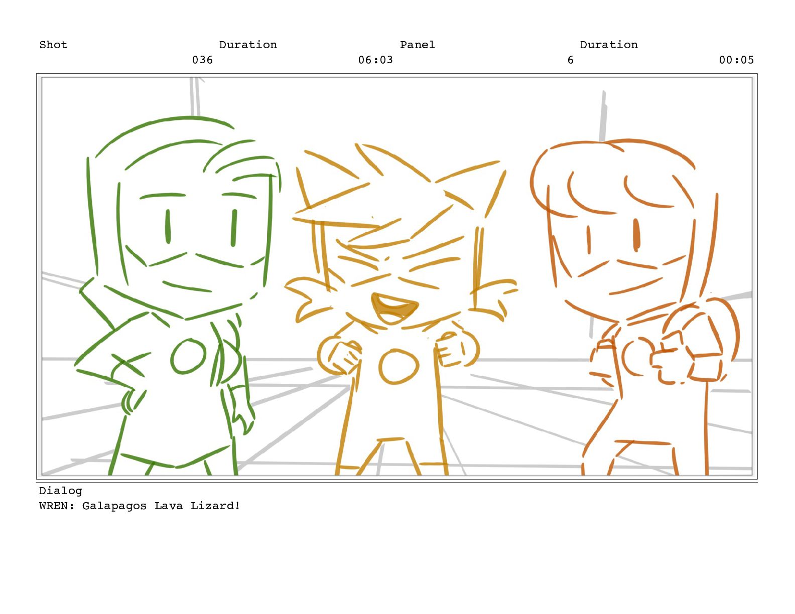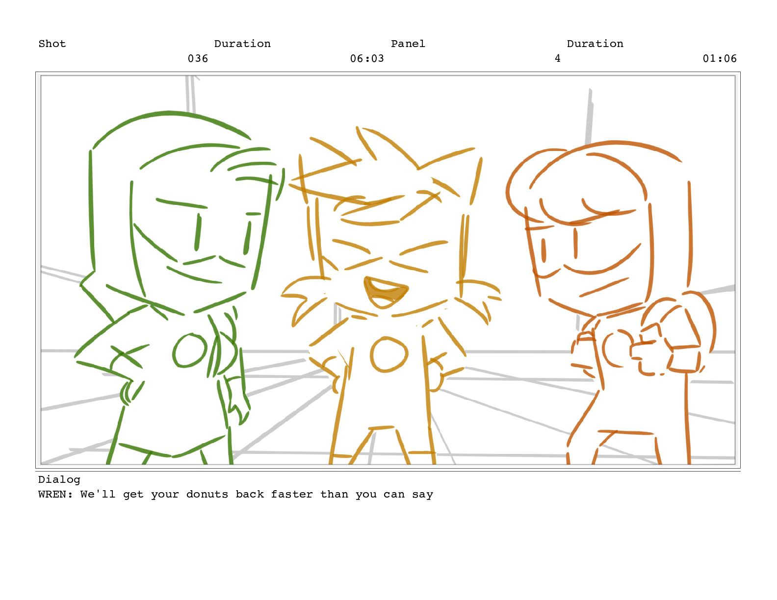 Shot 056 Duration 03:17 Panel 1 Duration 00:15 Dialog TREENA: