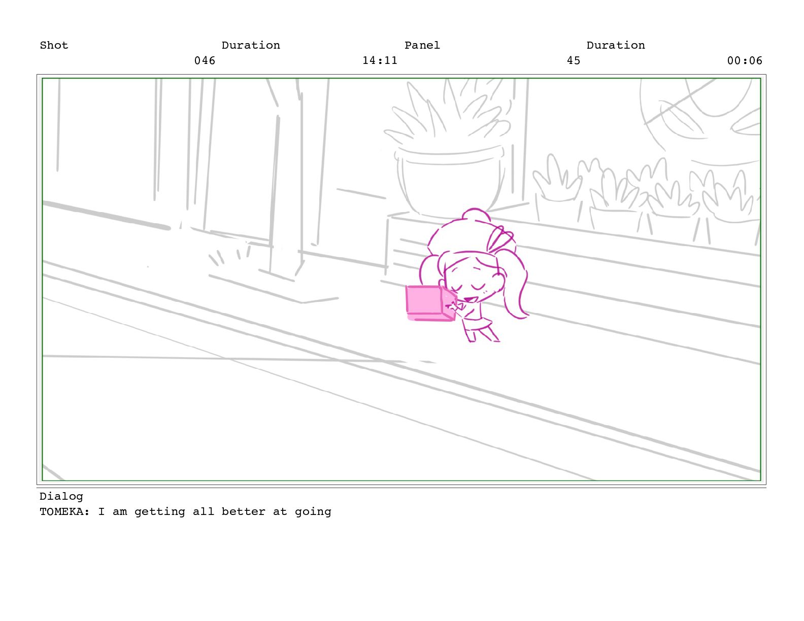 Shot 055 Duration 06:21 Panel 14 Duration 00:07 Dialog TREENA: