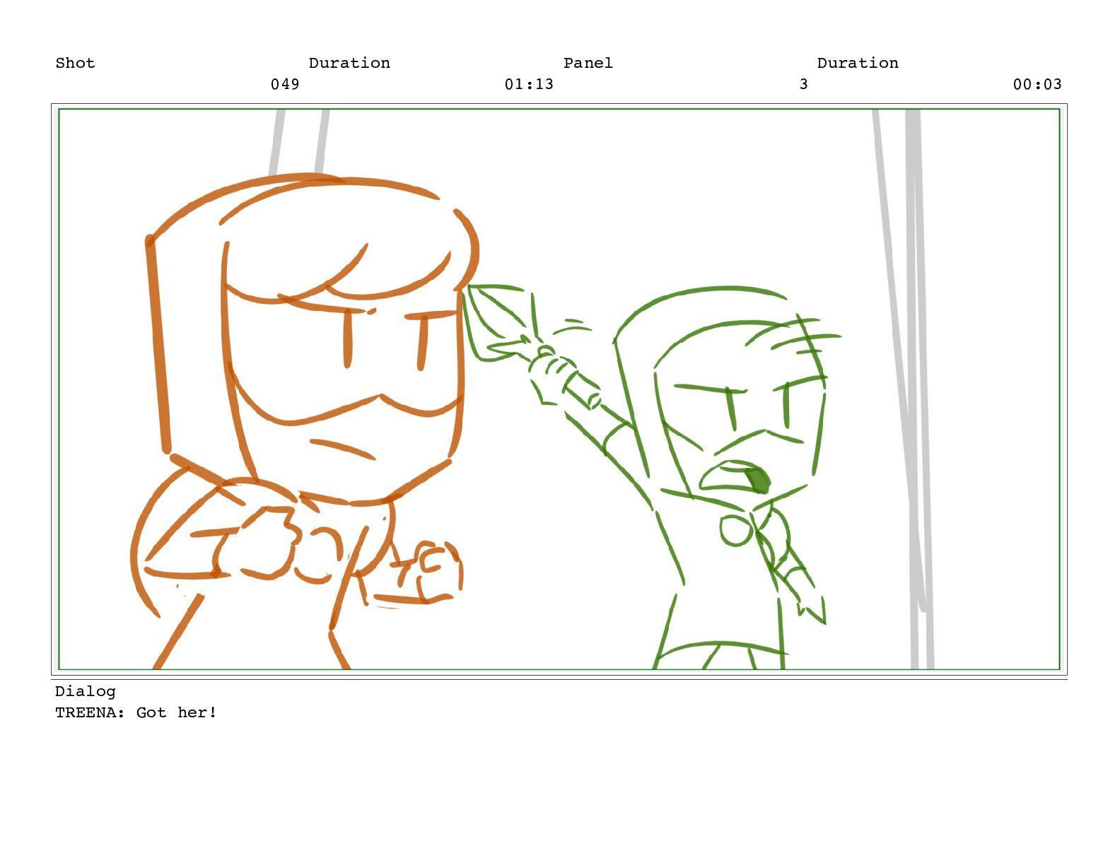 Shot 049 Duration 01:13 Panel 3 Duration 00:03 Dialog TREENA: