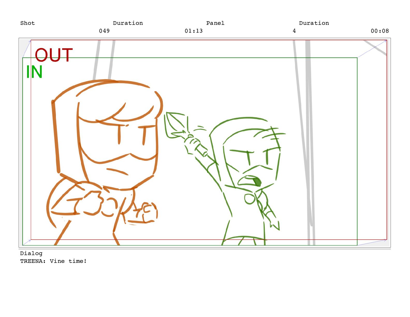 Shot 049 Duration 01:13 Panel 4 Duration 00:08 Dialog TREENA: