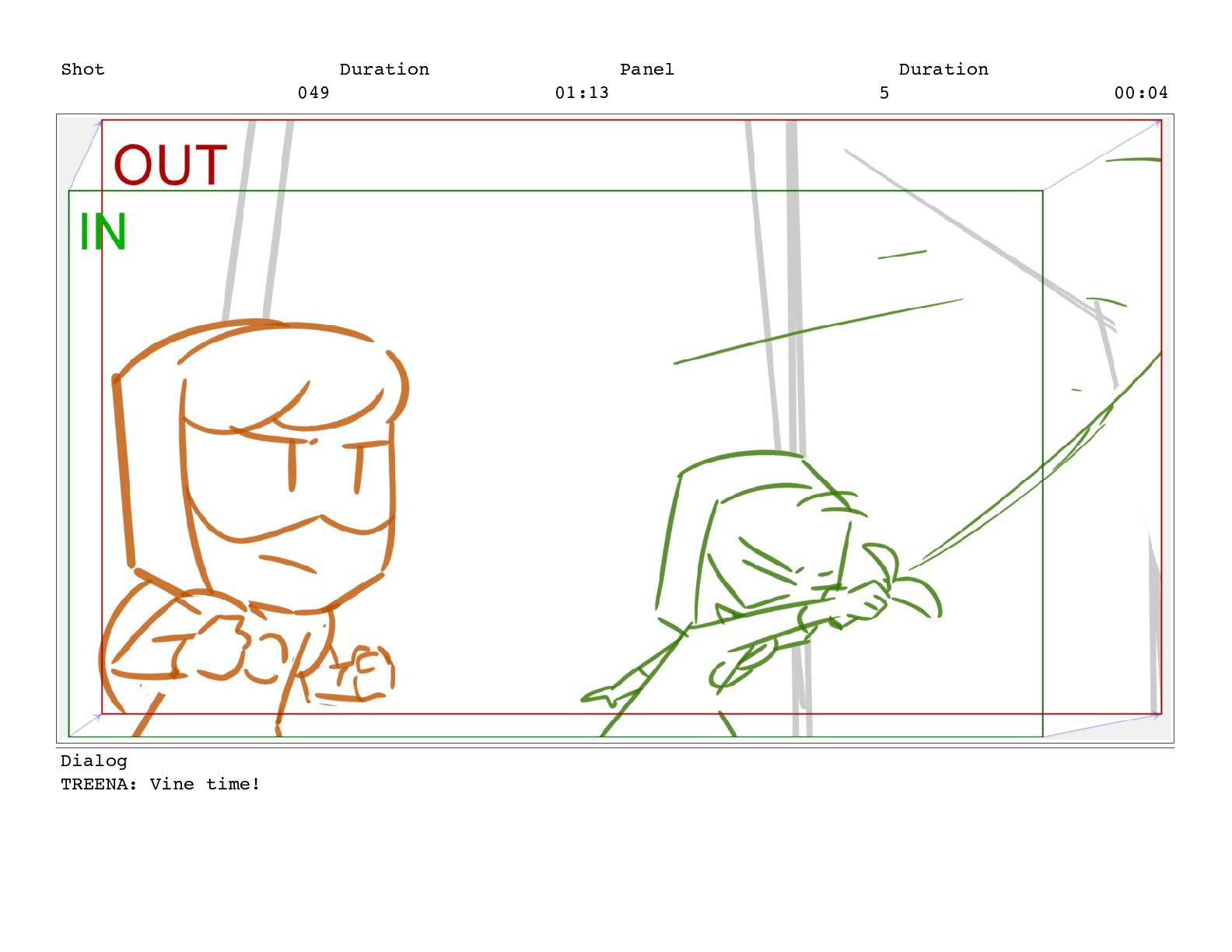 Shot 049 Duration 01:13 Panel 5 Duration 00:04 Dialog TREENA: