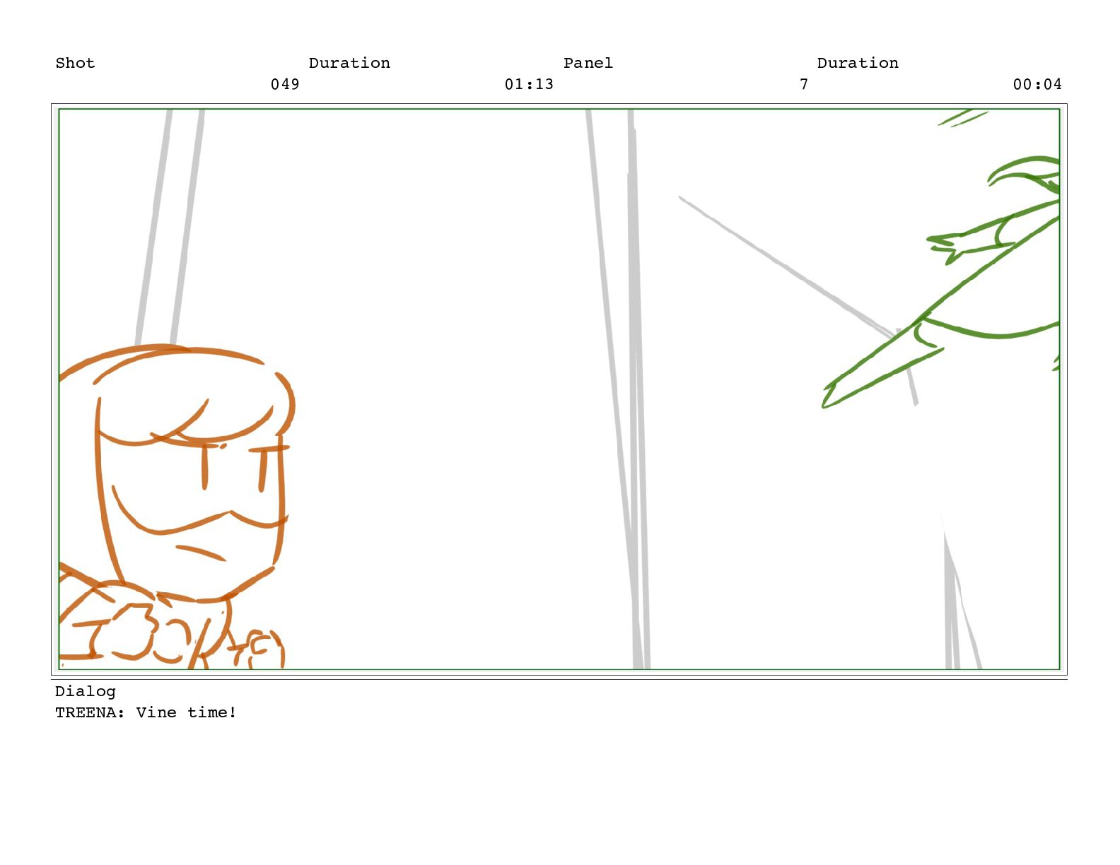 Shot 049 Duration 01:13 Panel 7 Duration 00:04 Dialog TREENA: