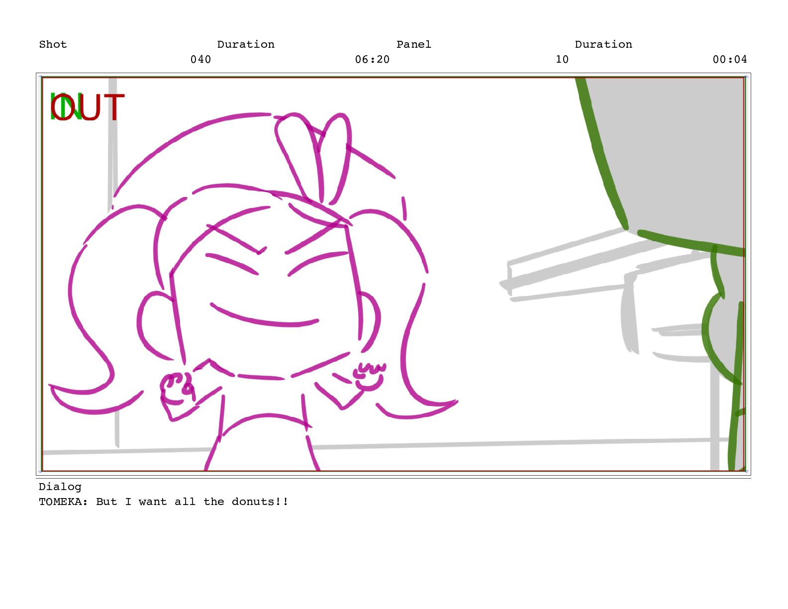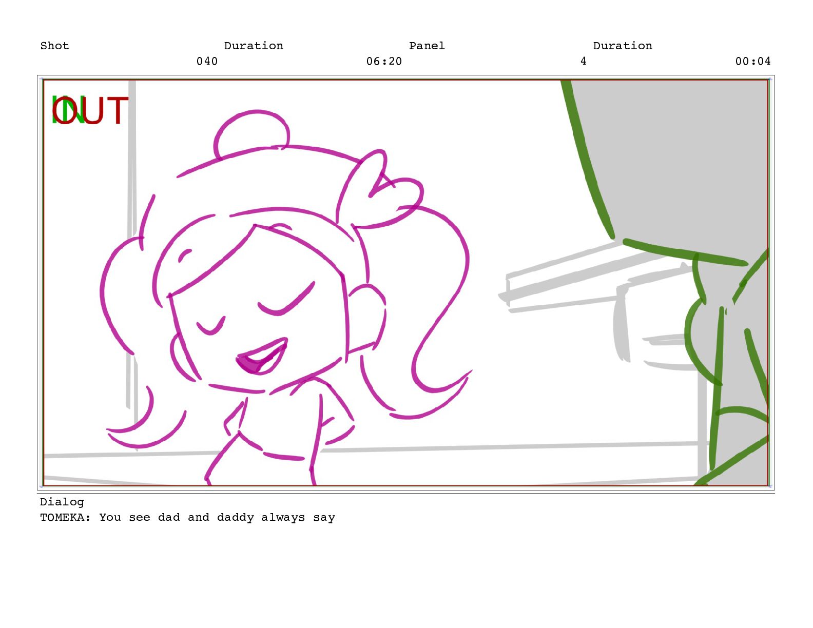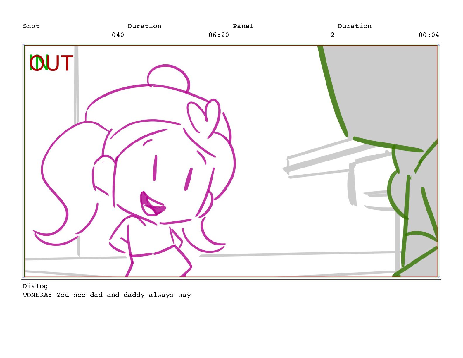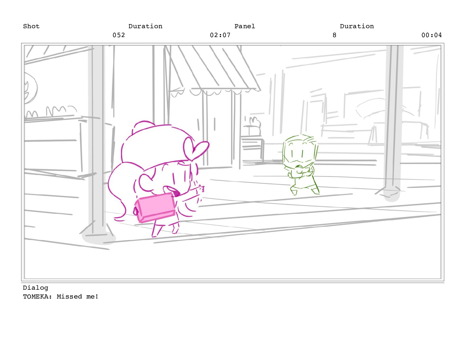 Shot 052 Duration 02:07 Panel 10 Duration 00:04 Dialog TOMEKA: