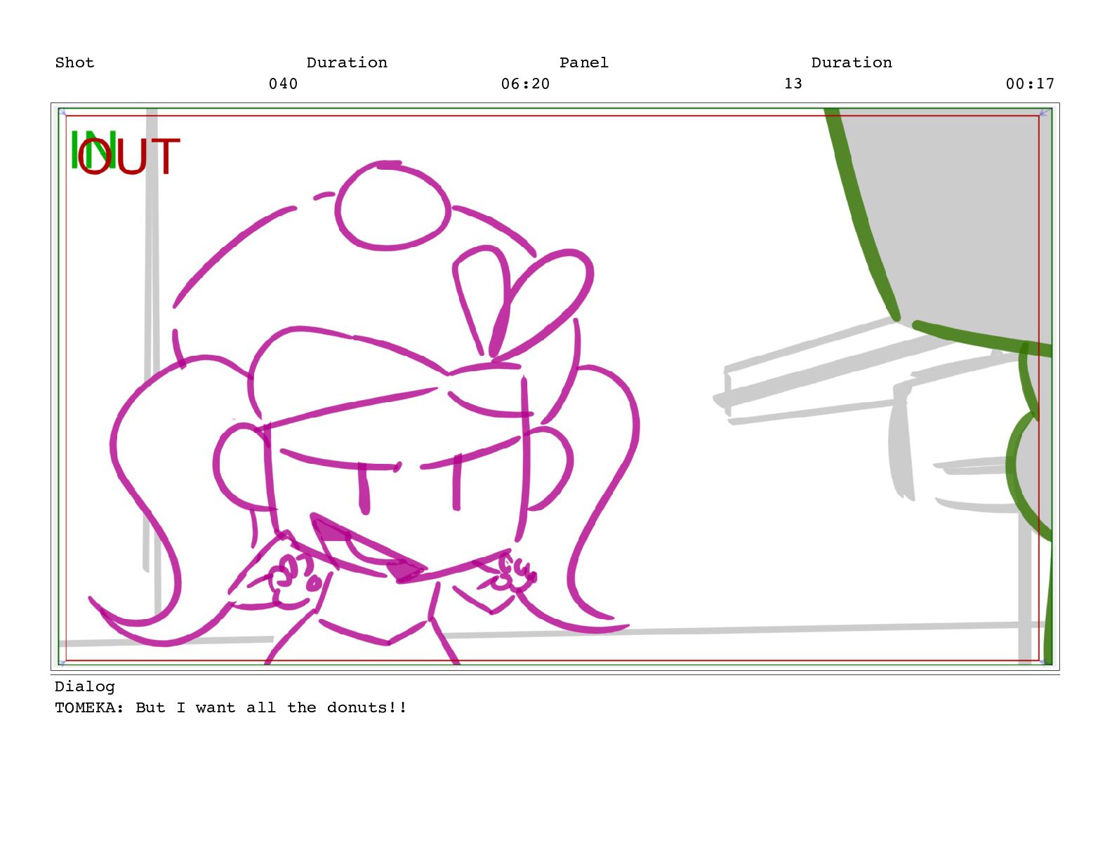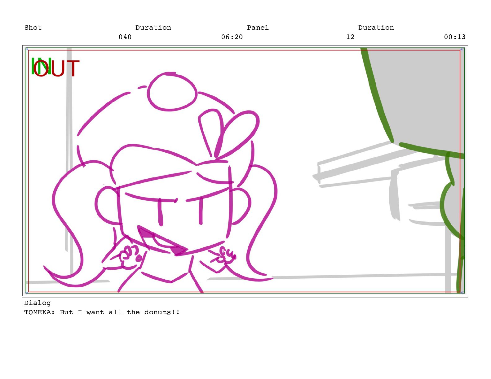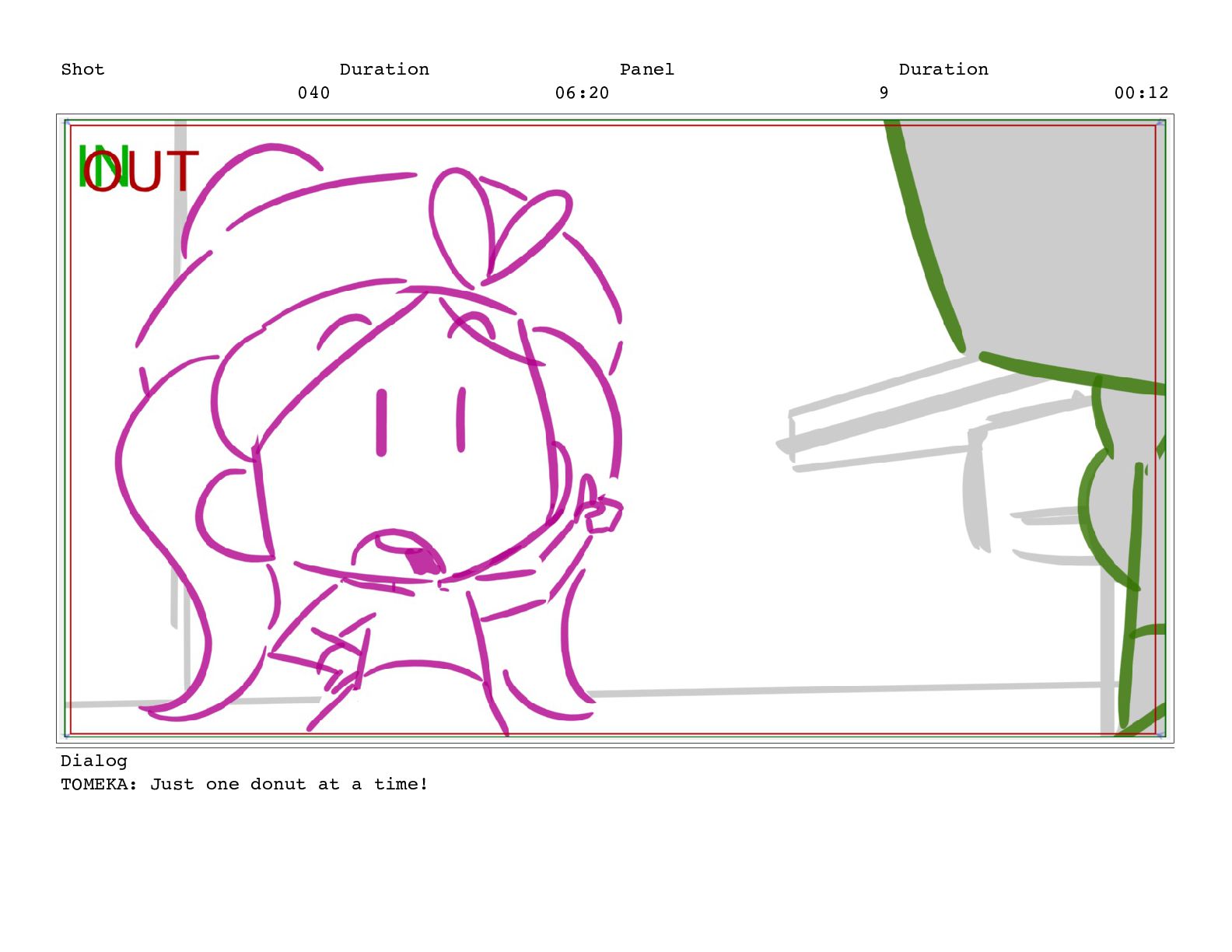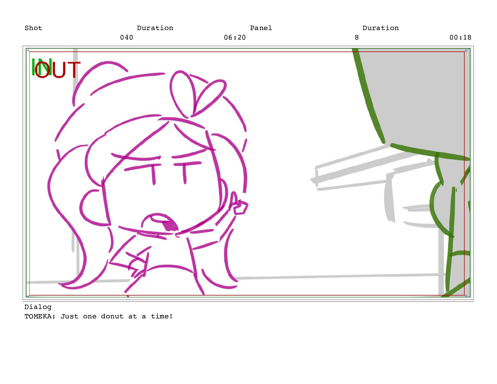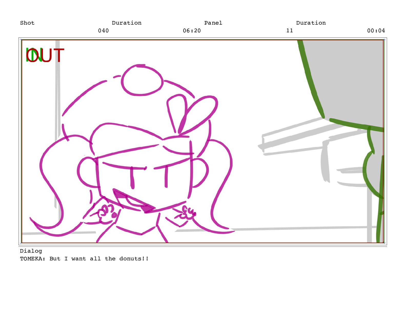 Shot 052 Duration 02:07 Panel 10 Duration 00:04 Dialog TOMEKA: