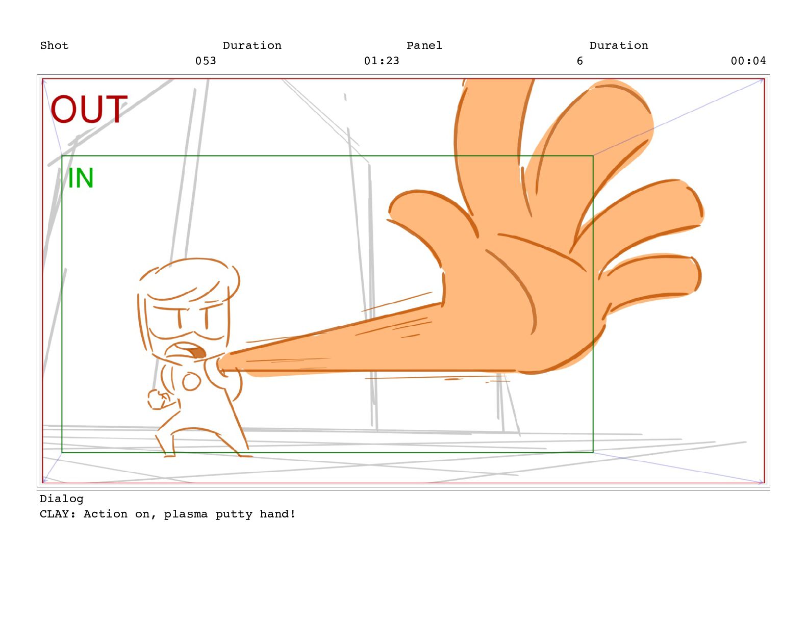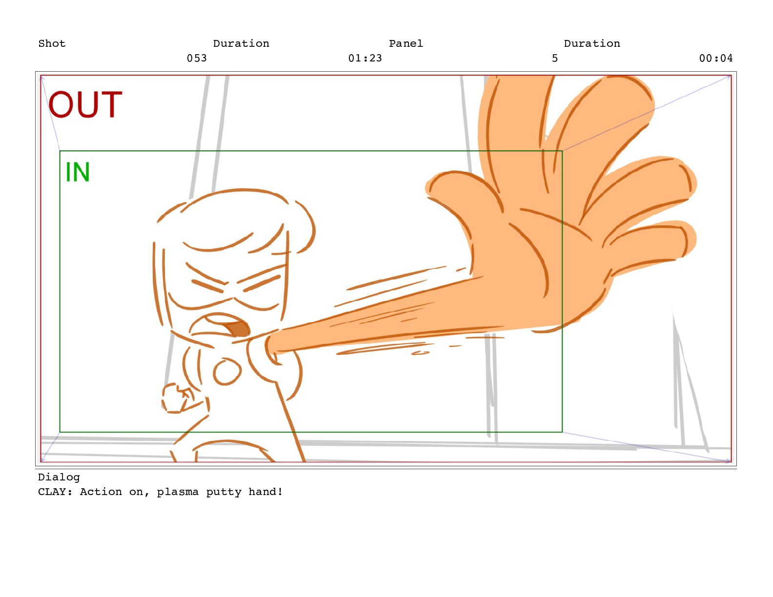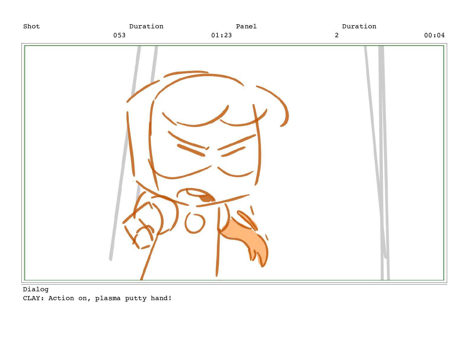Shot 053 Duration 01:23 Panel 6 Duration 00:04 Dialog CLAY: