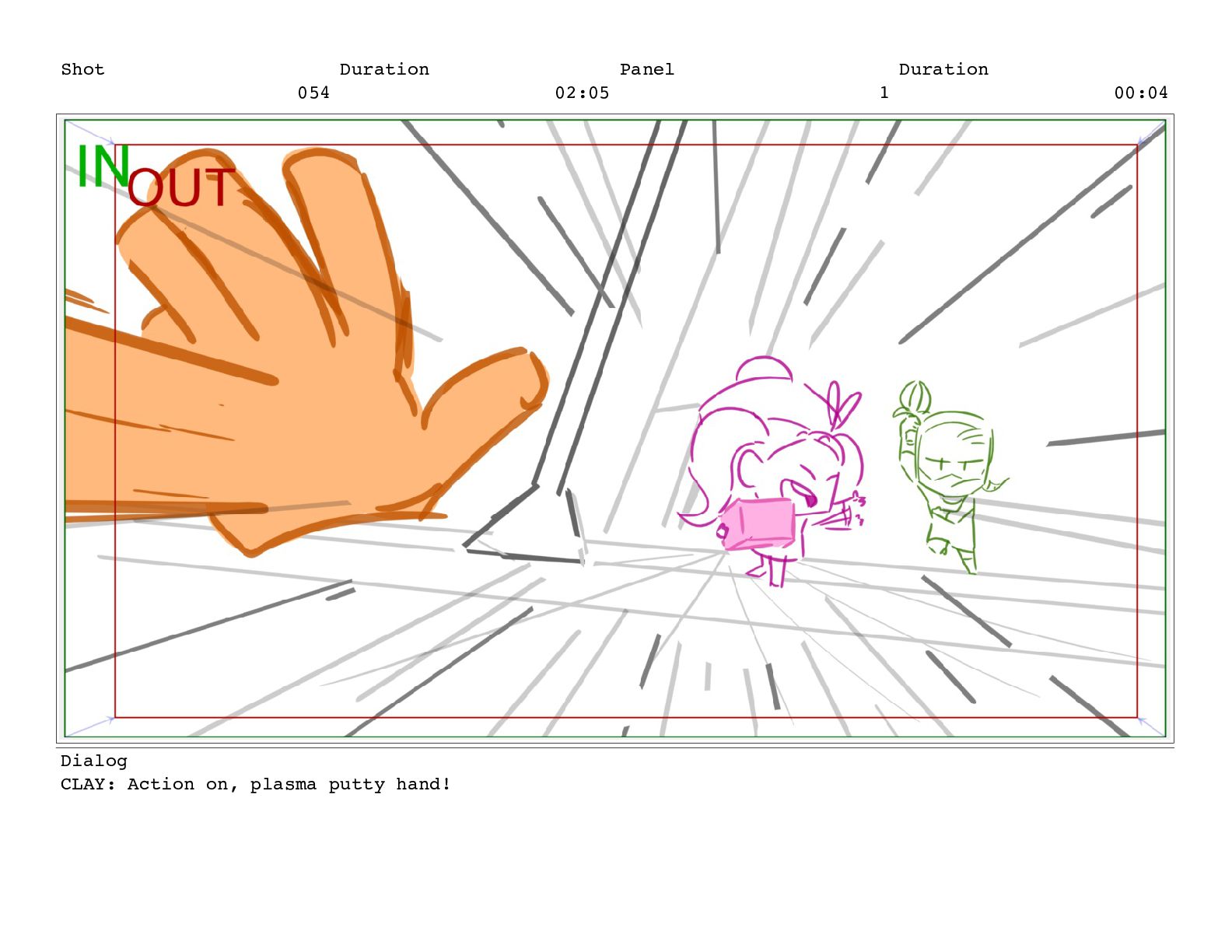 Shot 054 Duration 02:05 Panel 1 Duration 00:04 Dialog CLAY: