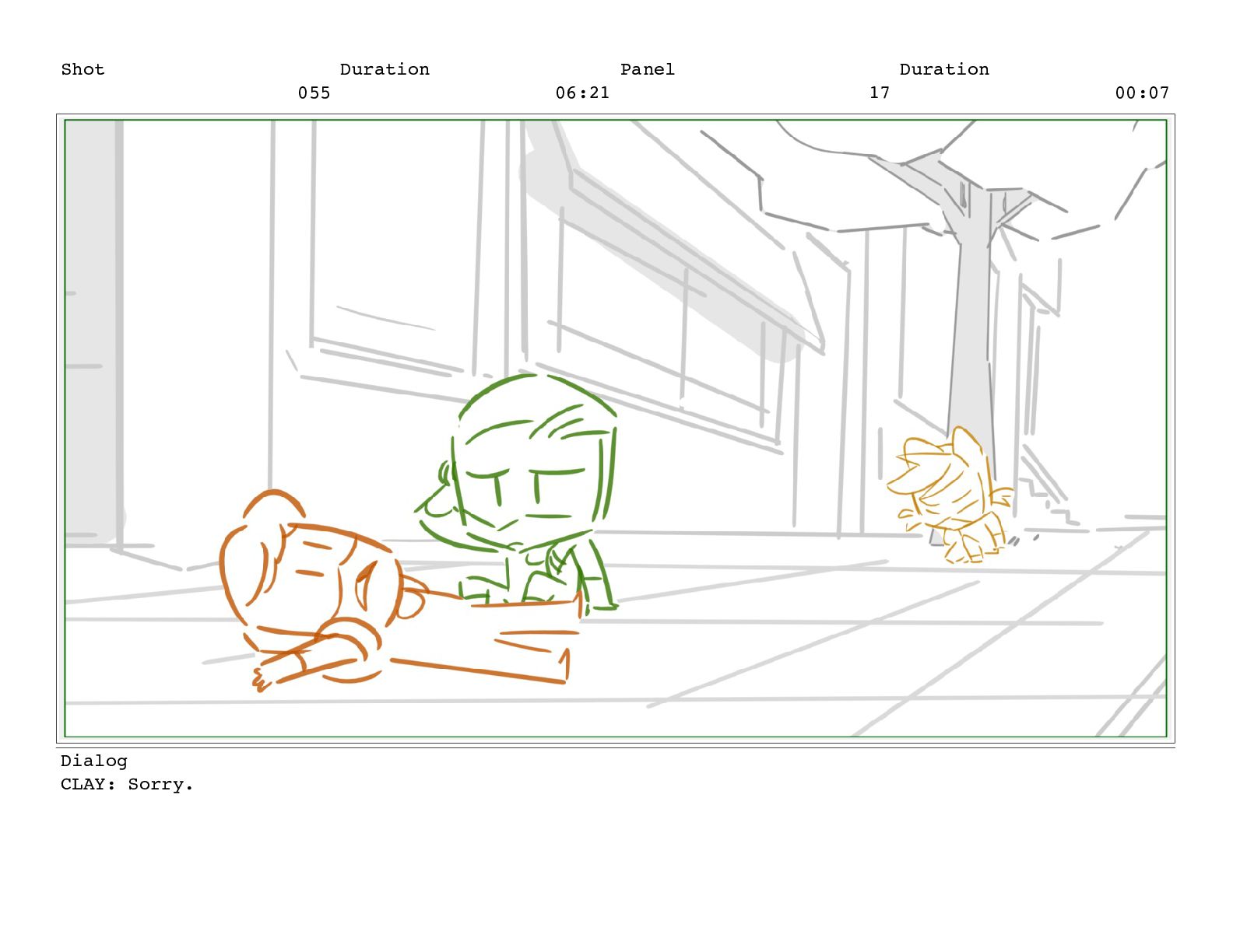 Shot 055 Duration 06:21 Panel 18 Duration 00:07 Dialog CLAY: