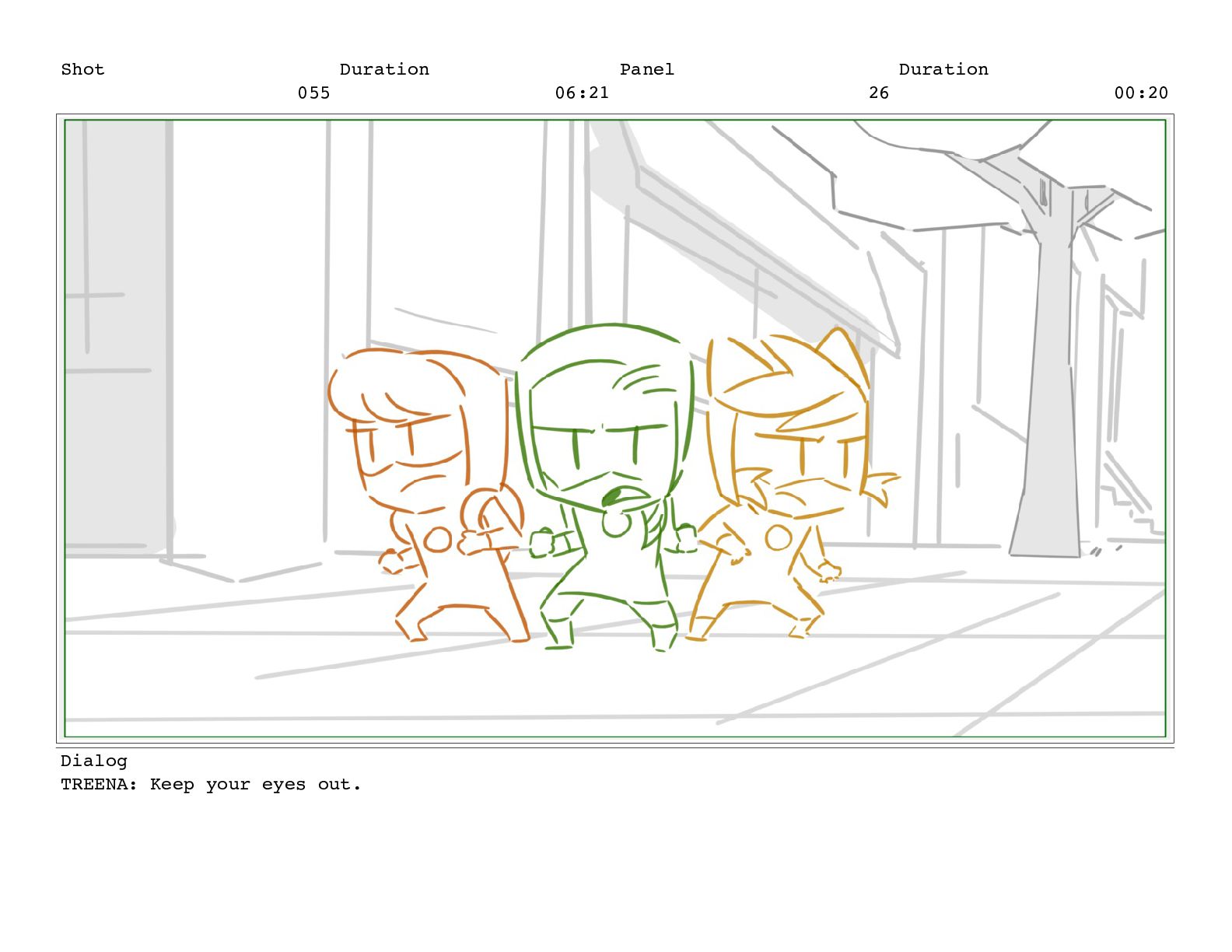 Shot 055 Duration 06:21 Panel 26 Duration 00:20 Dialog TREENA: