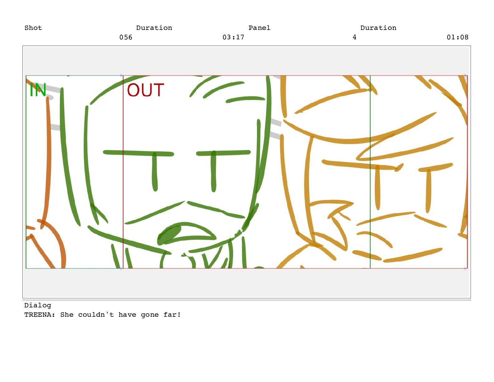 Shot 056 Duration 03:17 Panel 4 Duration 01:08 Dialog TREENA: