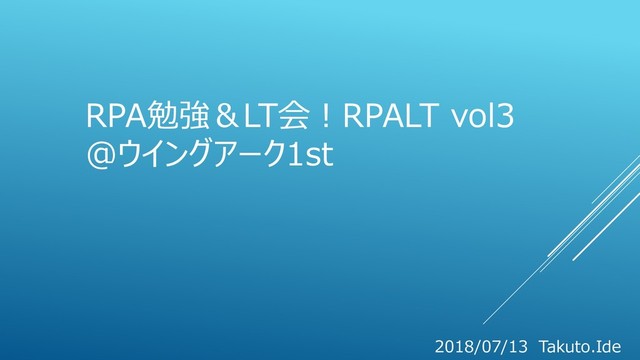 RPA勉強&LT会!RPALT vol3 @ウイングアーク1st 2018/07/13 Takuto.Ide
