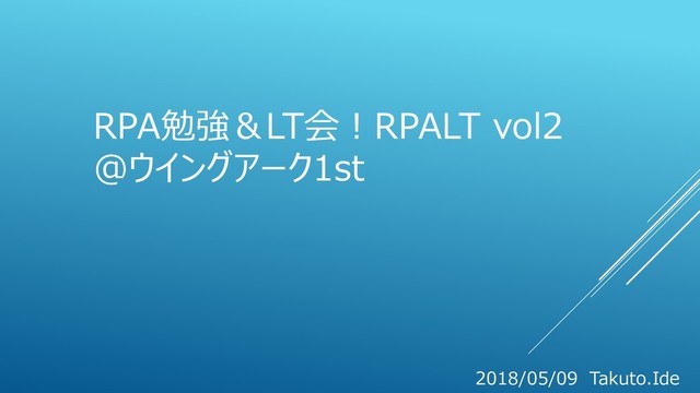 RPA勉強&LT会!RPALT vol2 @ウイングアーク1st 2018/05/09 Takuto.Ide