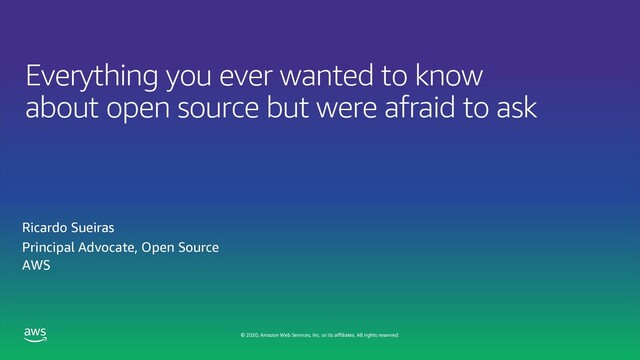 To many, open source is just software that you find and download under an OSI license. Open source however has the ability the give organisations tremendous strategic advantage when positioned and used well. In this talk you will understand more about what open source really is, its evolution over time and how both developers and business should think about this. I will then share how this applies at Amazon and why we care about open source software.
