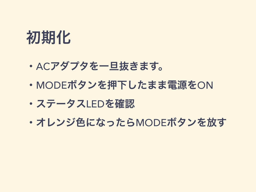 ॳظԽ ɾACΞμϓλΛҰ୴ൈ͖·͢ɻ ɾMODEϘλϯΛԡԼͨ͠··ిݯΛON ɾεςʔλεLEDΛ֬ೝ ɾΦϨϯδ৭ʹͳͬͨΒMODEϘλϯΛ์͢