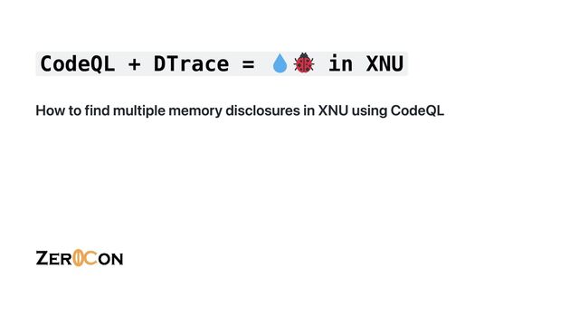 Apple kernel bug Weggli was used to find a specific pattern Finding a memory exposure vulnerability with CodeQL CodeQL was used, the author found a bug in the DTrace module of XNU 8