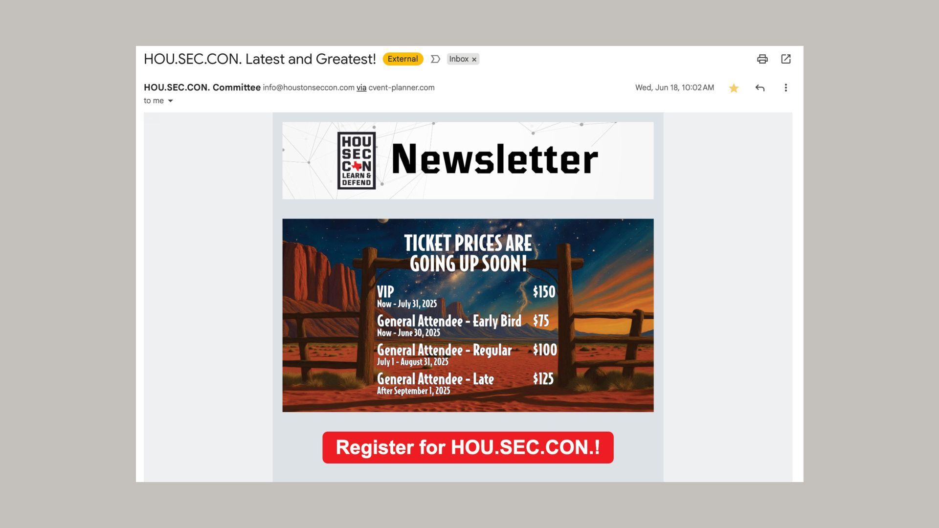 HOU.SEC.CON 2025: https://web.cvent.com/event/9ba9c5ea-9502-44a2-922e-d026c047c9f3/websitePage:dd3dff4f-9597-4a4b-960e-eb732a9a3853?session=6c9e50ba-cce4-4ff0-a21b-8b59bc245729