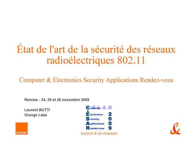 C&ESAR 2009 - État de l'art de la sécurité des réseaux radioélectriques 802.11