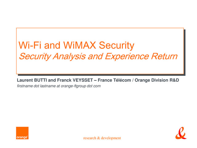 – p 23 State of The Art: 802.11 Driver/Parser Vulnerabilities CVE-2006-5882 (DRIVER/WIN) Stack-based buffer overflow in the Broadcom BCMWL5.SYS wireless device driver 3.50.21.10, as used in Cisco Linksys WPC300N Wireless-N Notebook Adapter before 4.100.15.5 and other products, allows remote attackers to execute arbitrary code via an 802.11 response frame containing a long SSID field. CVE-2006-5710 (DRIVER/OSX) The Airport driver for certain Orinoco based Airport cards in Darwin kernel 8.8.0 in Apple Mac OS X 10.4.8, and possibly other versions, allows remote attackers to execute arbitrary code via an 802.11 probe response frame without any valid information element (IE) fields after the header, which triggers a heap-based buffer overflow. CVE-2006-3992 (DRIVER/WIN) Unspecified vulnerability in the Centrino (1) w22n50.sys, (2) w22n51.sys, (3) w29n50.sys, and (4) w29n51.sys Microsoft Windows drivers for Intel 2200BG and 2915ABG PRO/Wireless Network Connection before 10.5 with driver 9.0.4.16 allows remote attackers to execute arbitrary code via certain frames that trigger memory corruption. CVE-2006-3509 (DRIVER/OSX) Integer overflow in the API for the AirPort wireless driver on Apple Mac OS X 10.4.7 might allow physically proximate attackers to cause a denial of service (crash) or execute arbitrary code in third-party wireless software that uses the API via crafted frames. CVE-2006-3508 (DRIVER/OSX) Heap-based buffer overflow in the AirPort wireless driver on Apple Mac OS X 10.4.7 allows physically proximate attackers to cause a denial of service (crash), gain privileges, and execute arbitrary code via a crafted frame that is not properly handled during scan cache updates. CVE-2006-3507 (DRIVER/OSX) Multiple stack-based buffer overflows in the AirPort wireless driver on Apple Mac OS X 10.3.9 and 10.4.7 allow physically proximate attackers to execute arbitrary code by injecting crafted frames into a wireless network. CVE-2006-1385 (PARSER) Stack-based buffer overflow in the parseTaggedData function in WavePacket.mm in KisMAC R54 through R73p allows remote attackers to execute arbitrary code via multiple SSIDs in a Cisco vendor tag in a 802.11 management frame. CVE-2006-0226 (DRIVER/BSD) Integer overflow in IEEE 802.11 network subsystem (ieee80211_ioctl.c) in FreeBSD before 6.0-STABLE, while scanning for wireless networks, allows remote attackers to execute arbitrary code by broadcasting crafted (1) beacon or (2) probe response frames.