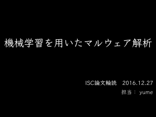 This is the summary slides of malware analysis using machine learning . (2016.12.27@ISC meeting) Please be sure that I was quite a beginner of both malware analysis and machine learning at that time. This slides doesn't include details of neither of them. This is the reference below.