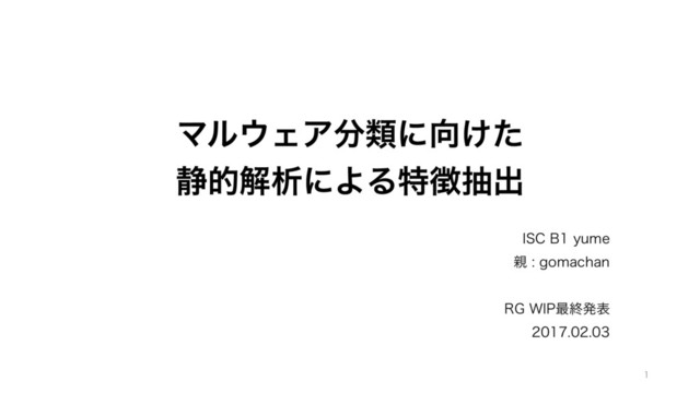 ϚϧΣΞྨʹ͚ͨ ੩తղੳʹΑΔಛநग़ *4$#ZVNF HPNBDIBO 3(8*1࠷ऴൃද