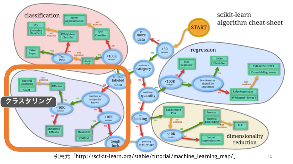 12 Ҿ༻ݩʮhttp://scikit-learn.org/stable/tutorial/machine_learning_map/ʯ ΫϥελϦϯά
