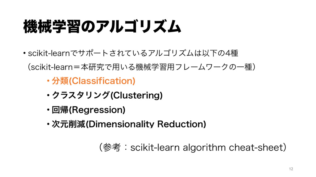 ػցֶशͷΞϧΰϦζϜ 12 • TDJLJUMFBSOͰαϙʔτ͞Ε͍ͯΔΞϧΰϦζϜҎԼͷछ ʢTDJLJUMFBSOʹຊݚڀͰ༻͍Δػցֶश༻ϑϨʔϜϫʔΫͷҰछʣ • ྨ $MBTTJGJDBUJPO •