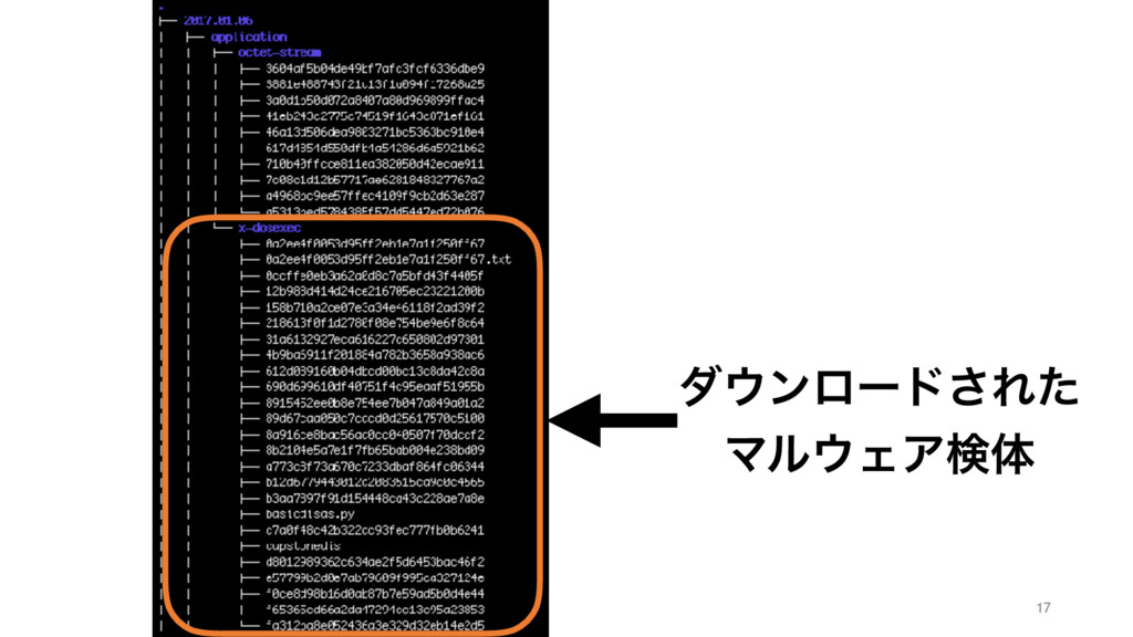 ֶश·ͰͷྲྀΕ 16 ϚϧΣΞݕମΛऔಘ • Լهͷ63-Ϧετ͔ΒϚϧΣΞݕମΛऔಘ • ʮ.BMXBSF%PNBJO-JTUʯXXXNBMXBSFEPNBJOMJTUDPN • ʮ797BVMUʯIUUQWYWBVMUTJSJVS[OFU63-@-JTUQIQ •